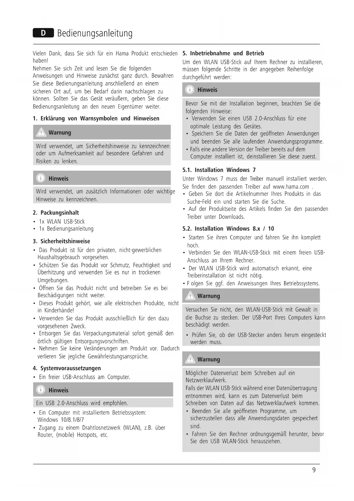 Downloads. Frequency band(s) 2.4GHz (2412MHz – 2472MHz) 5GHz (5150MHz – 5350MHz) 5GHz (5470MHz – 5725MHz) 5.8GHz (5725MHz – 5850MHz) Maximum radio-frequency power transmitted 10 MW EIRP Note If channels 36–64 (frequency 5.150–5.350 GHz) are used in a 5-GHz WLAN, the product may only be used in closed rooms.9 D Bedienungsanleitung Vielen Dank, dass Sie sich für ein Hama Produkt entschieden haben! Nehmen Sie sich Zeit und lesen Sie die folgenden Anweisungen und Hinweise zunächst ganz durch. Bewahren Sie diese Bedienungsanleitung anschließend an einem sicheren Ort auf, um bei Bedarf darin nachschlagen zu können. Sollten Sie das Gerät veräußern, geben Sie diese Bedienungsanleitung an den neuen Eigentümer weiter.