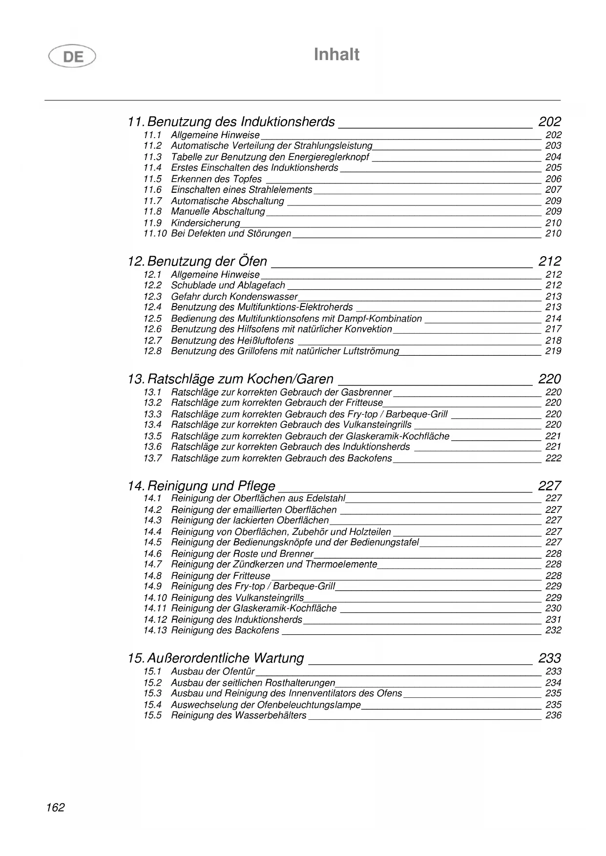 13.6 Ratschläge zur korrekten Gebrauch des Induktionsherds ________________________ 221