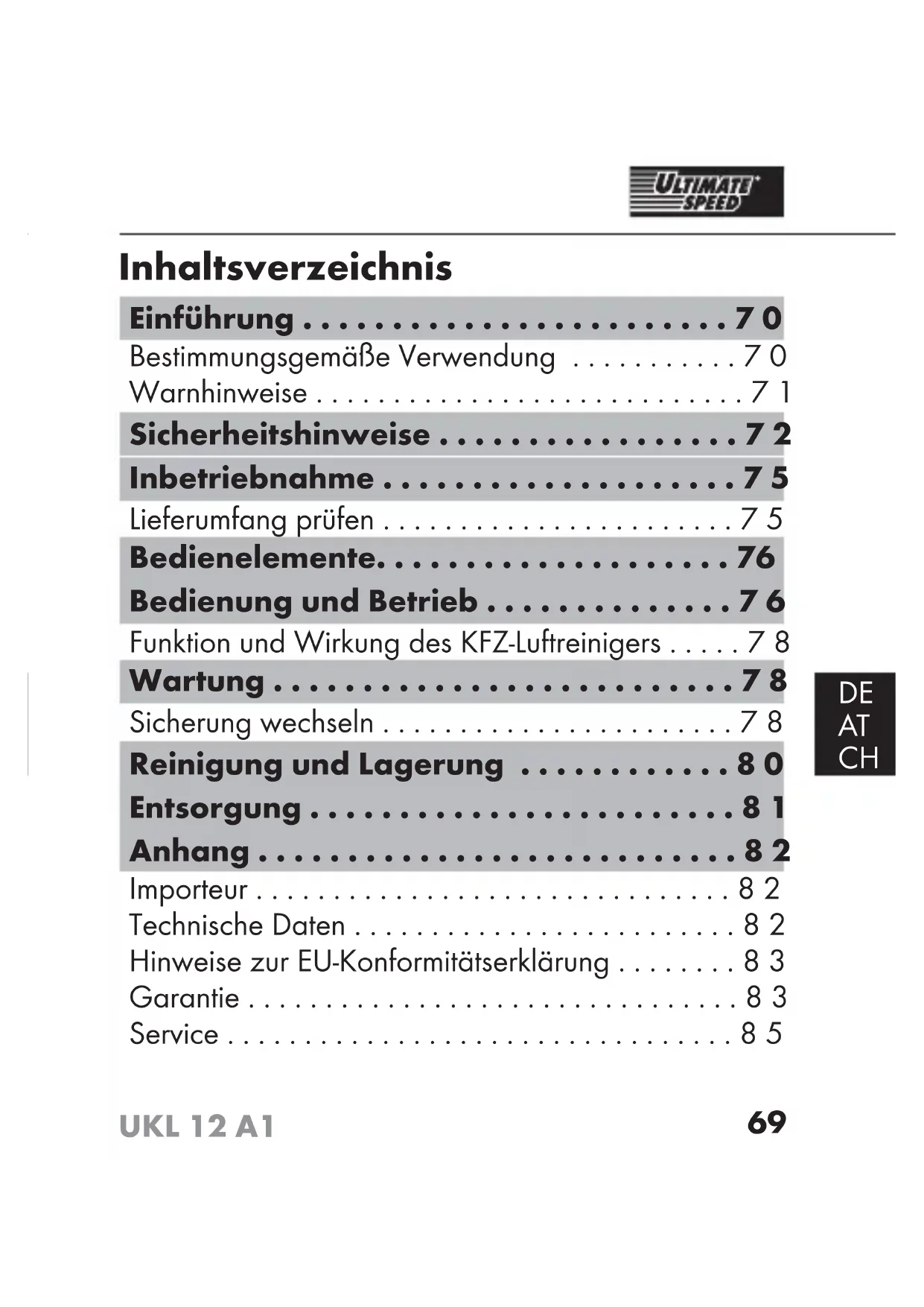 Finden Sie kostenlos die Bedienungsanleitung des Geräts UKL 12 A1 ULTIMATE SPEED als PDF.