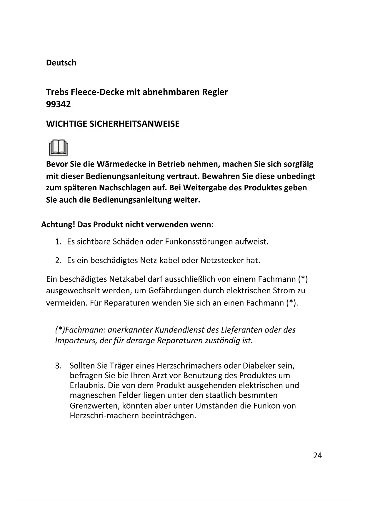99342 - Heizdecke/-kissen TREBS - Kostenlose Bedienungsanleitung