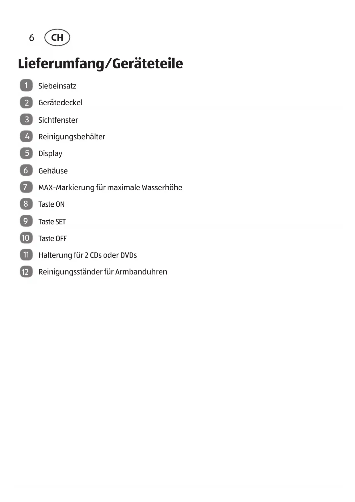 CHLieferumfang/Geräteteile