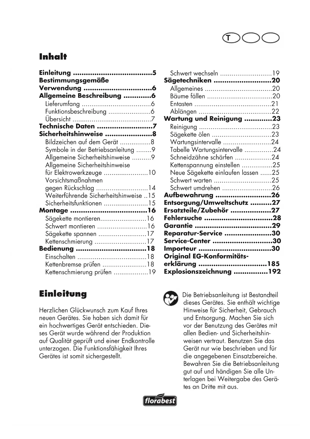 - Befolgen Sie sorgfältig die Wartungs-, Kontroll- und Serviceanweisungen in die- ser Betriebsanleitung. Beschädigte Schutzvorrichtungen und Teile müssen sachgemäß durch unser Service-Center repariert oder ausge- wechselt werden, soweit nichts anderes in der Betriebsanleitung angegeben ist. Sicherheitshinweise für Kettensägen: