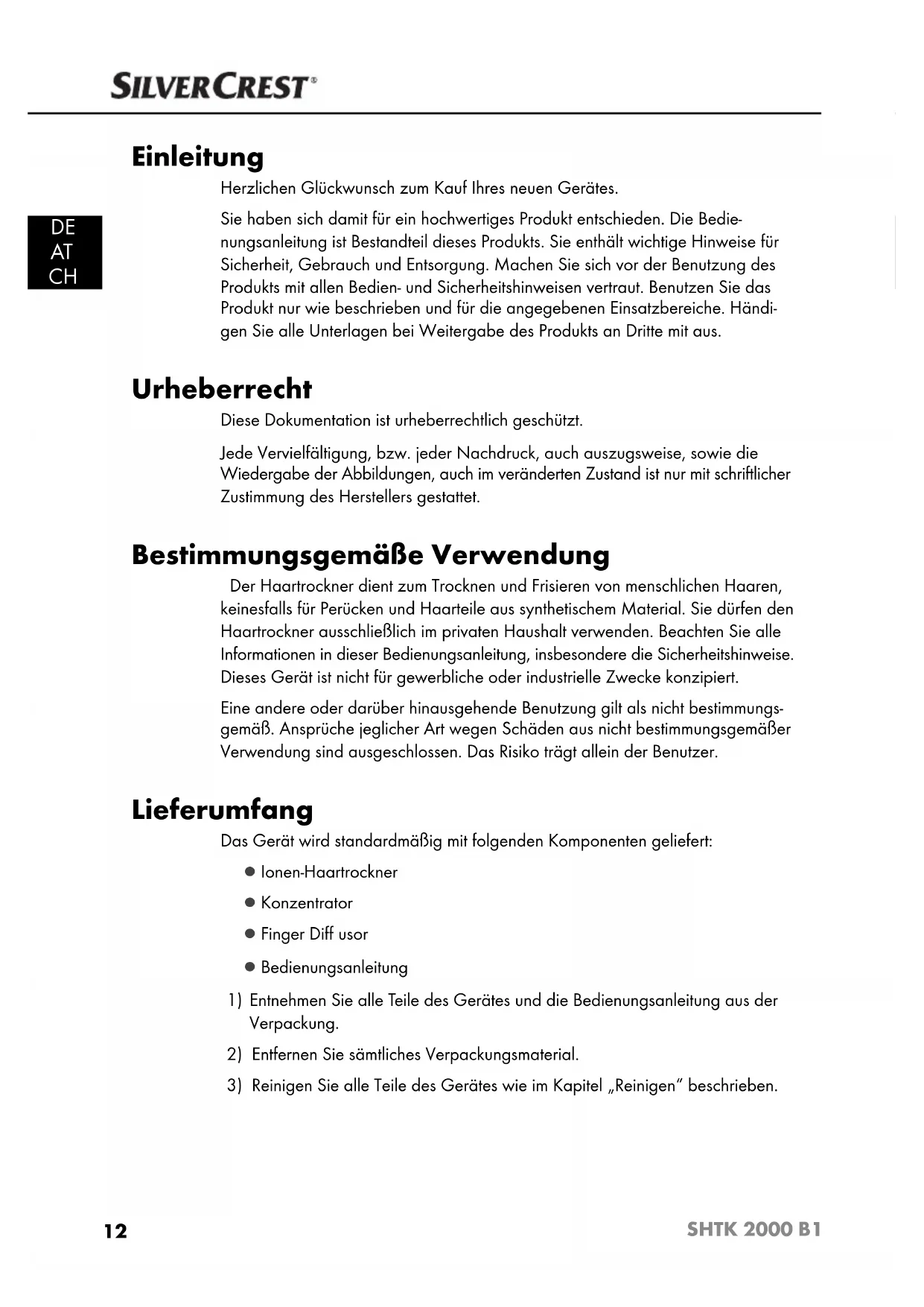 SHTK 2000 B1 - Haartrockner SILVERCREST - Kostenlose Bedienungsanleitung