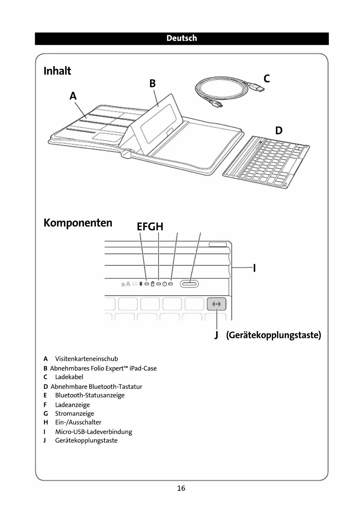 - Ihr KeyFolio kann nicht vom Benutzer gewartet werden. Versuchen Sie nicht, die Teile zu öffnen,