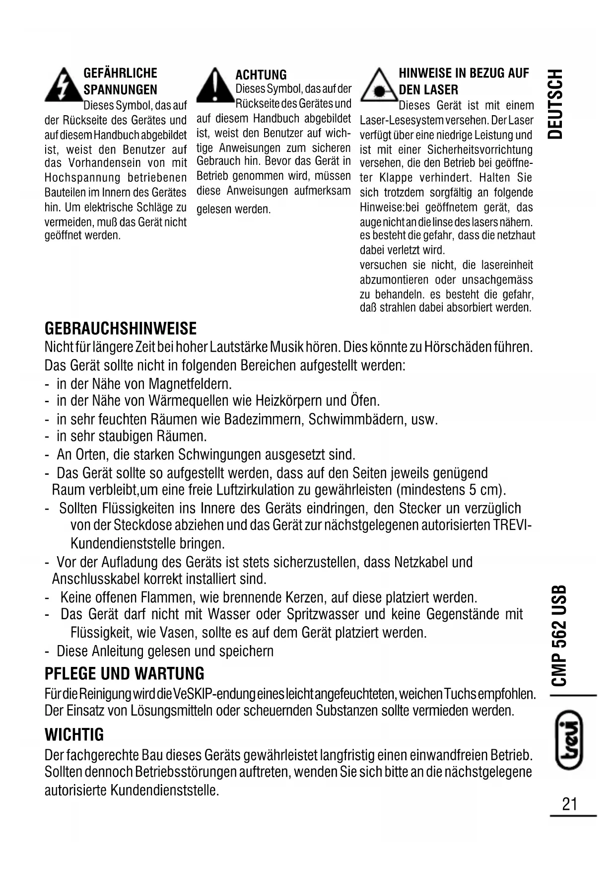 CMP 562 USB - Cd-spieler/rekorder Trevi - Kostenlose Bedienungsanleitung
