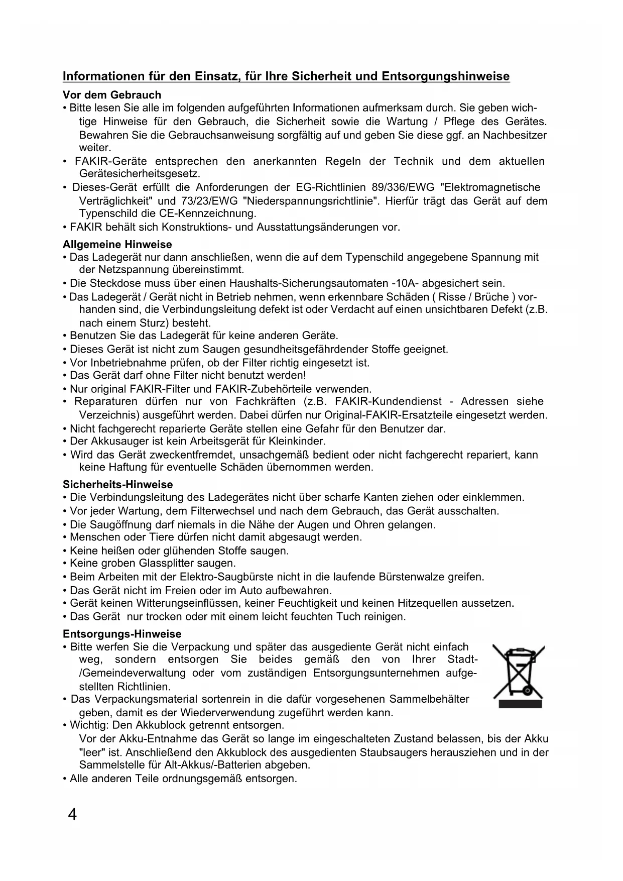 - FAKIR behält sich Konstruktions- und Ausstattungsänderungen vor. Allgemeine Hinweise