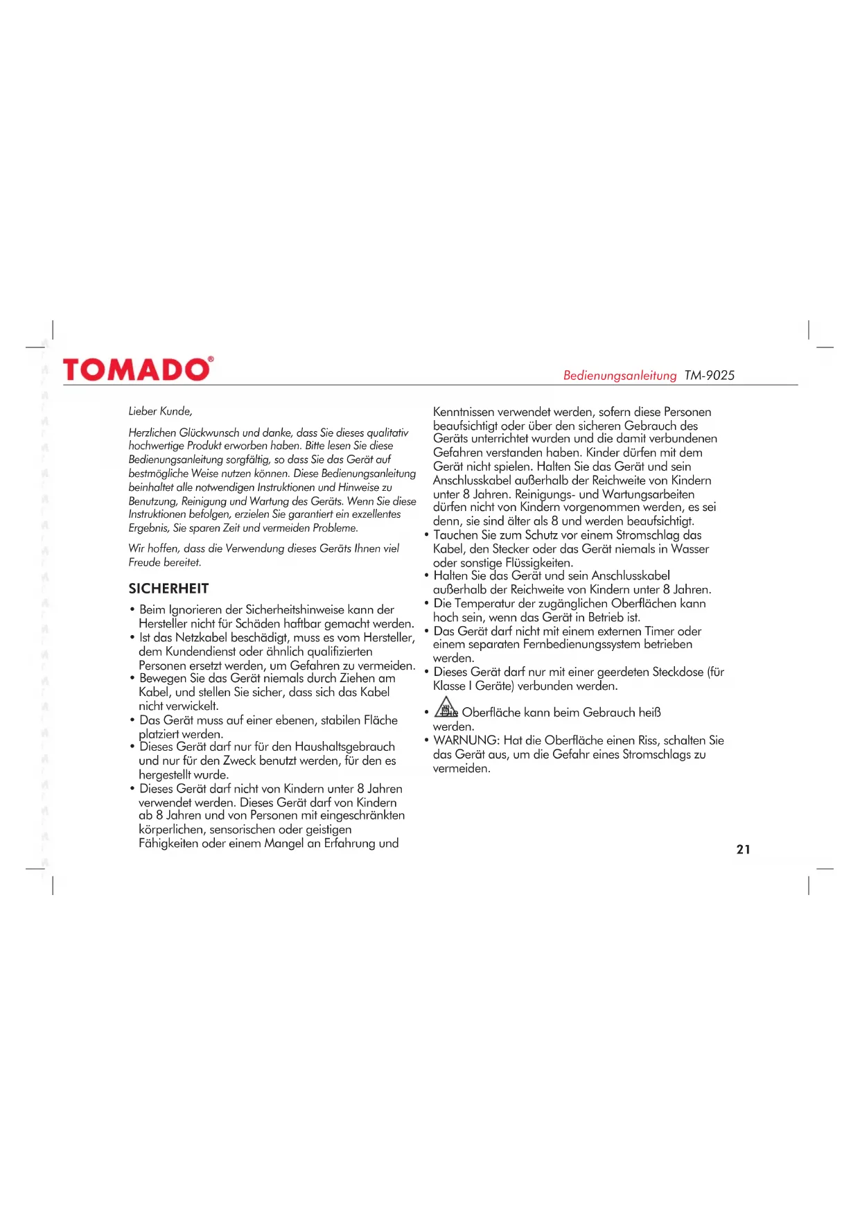 BEDIENUNGSANLEITUNG TM9025 Tomado