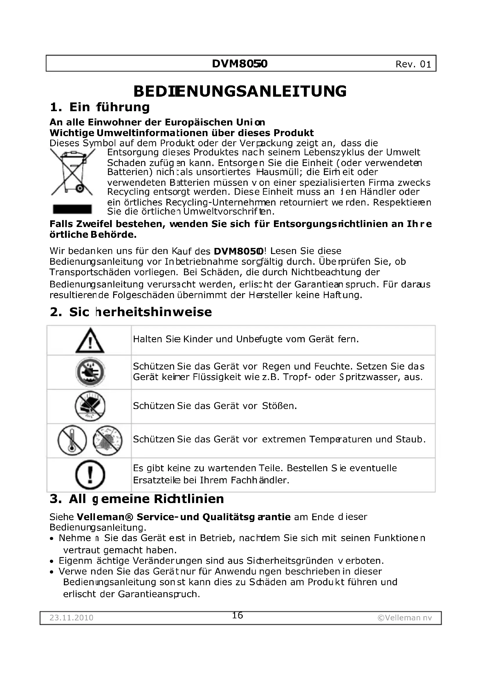 Siehe Velleman® Service- und Qualitätsgarantie am Ende dieser Bedienungsanleitung.
