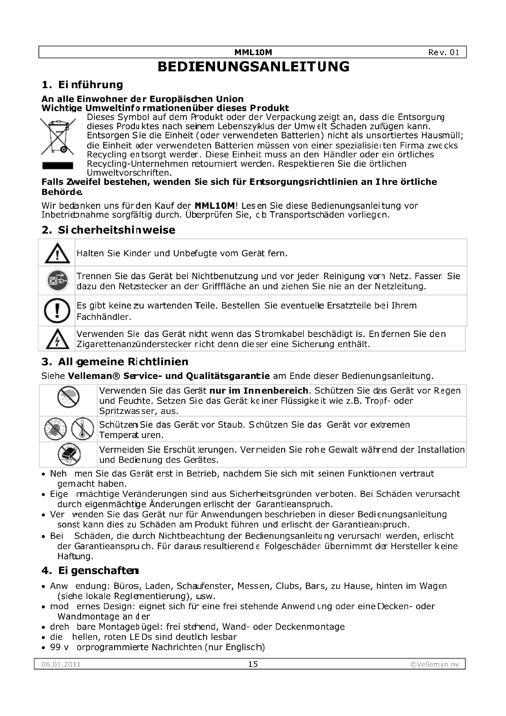 Finden Sie kostenlos die Bedienungsanleitung des Geräts MML10M VELLEMAN als PDF.