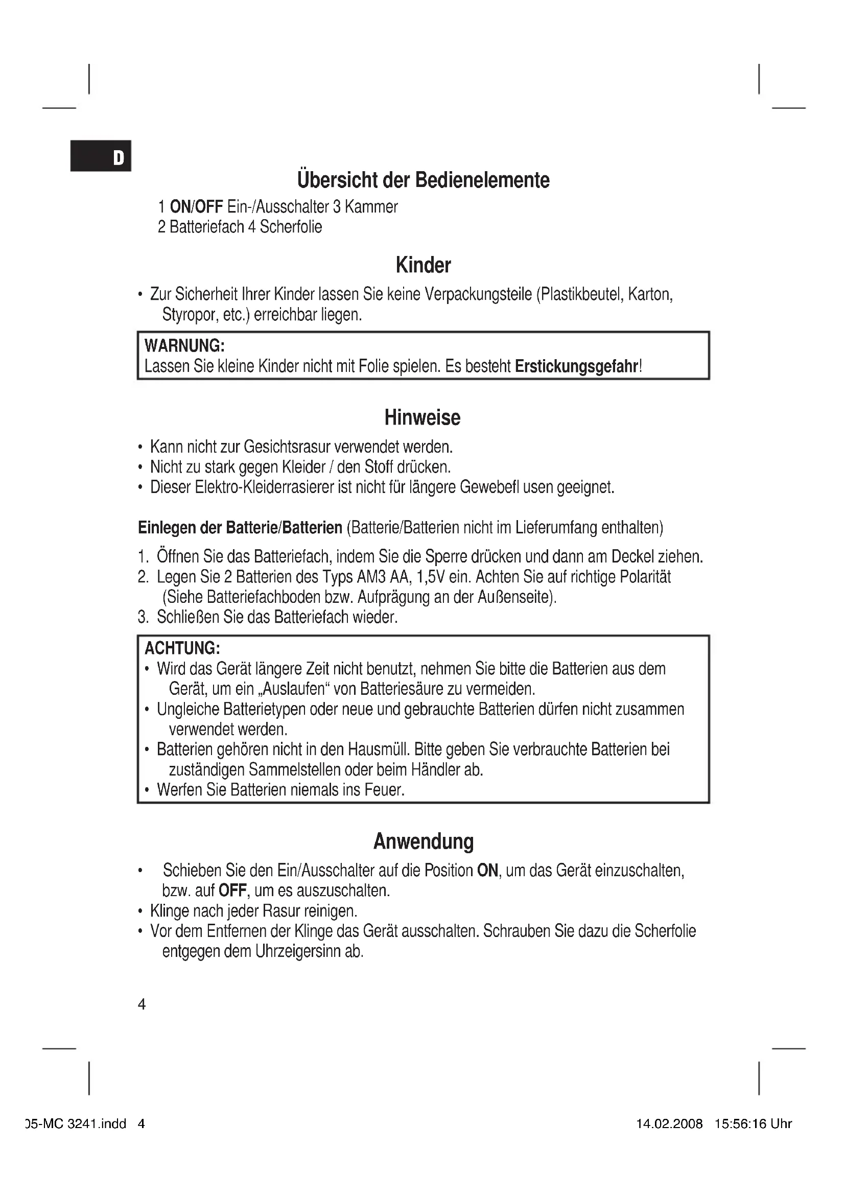 MC 3241 - Elektrischer Epilierer CLATRONIC - Kostenlose Bedienungsanleitung