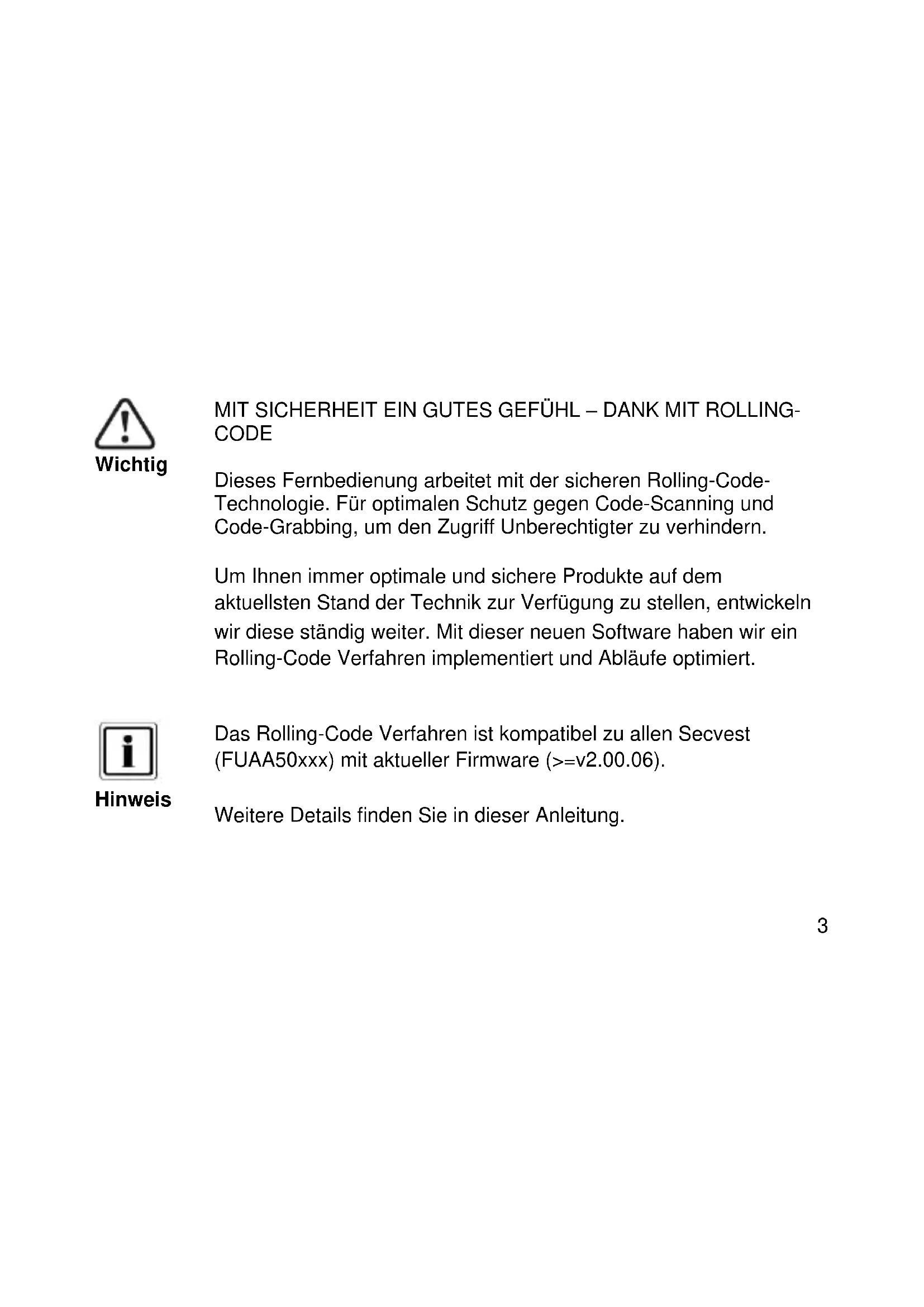 MIT SICHERHEIT EIN GUTES GEFUHL - DANK MIT ROLLING-CODE