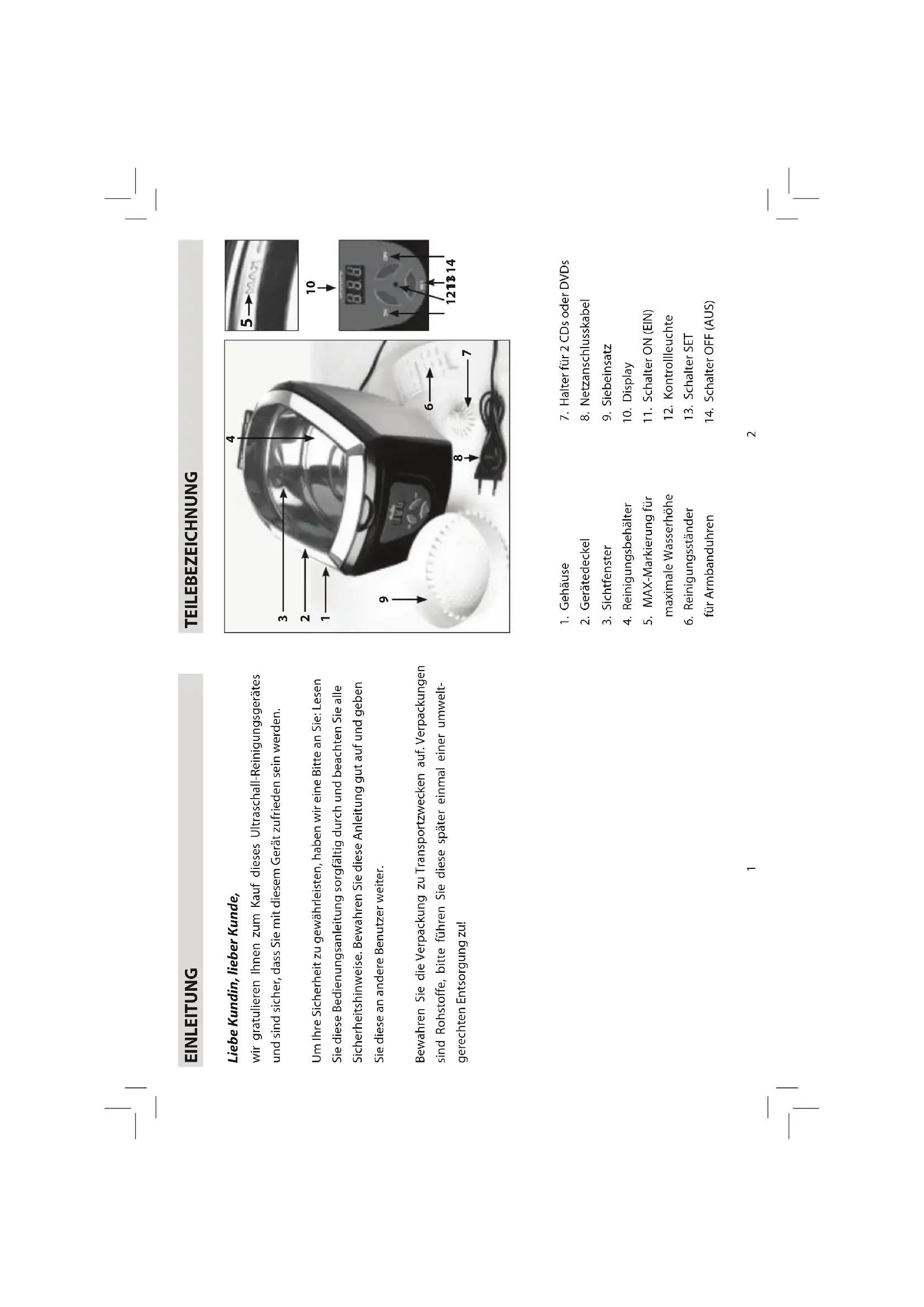 wir gratulieren Ihnen zum Kauf dieses Ultraschall-Reinigungsgerätes und sind sicher, dass Sie mit diesem Gerät zufrieden sein werden.