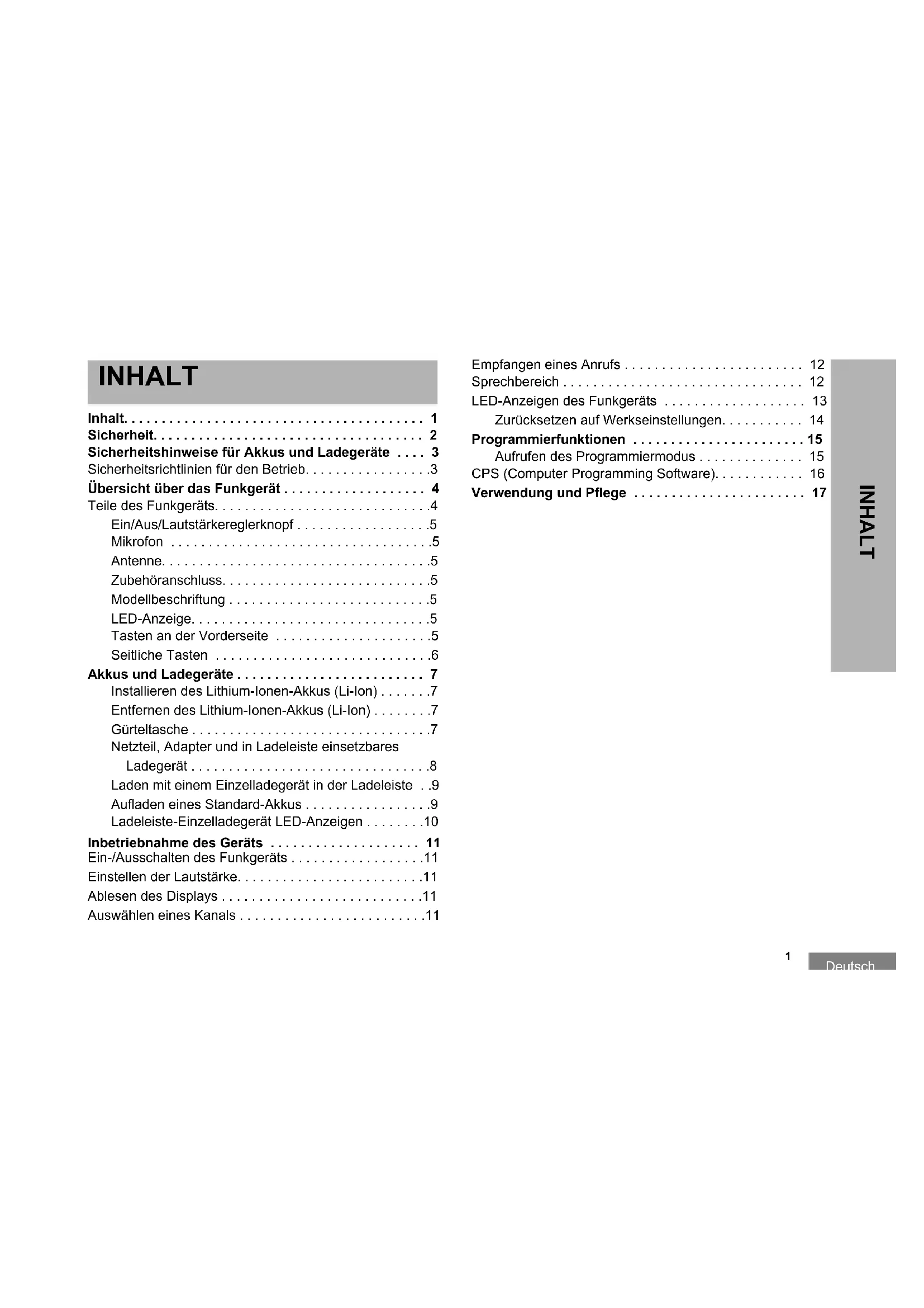 - Teile des Funkgeräts p. 4