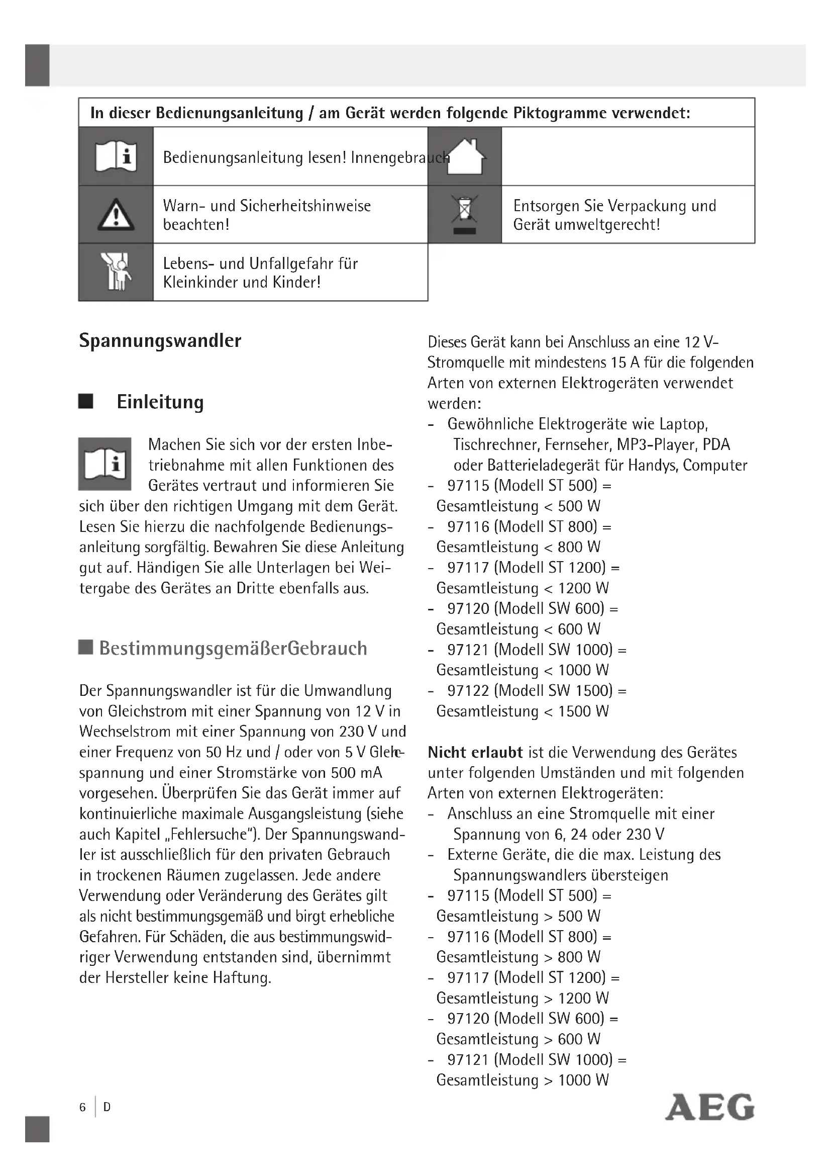 ST 1200 - Spannungswandler AEG - Kostenlose Bedienungsanleitung