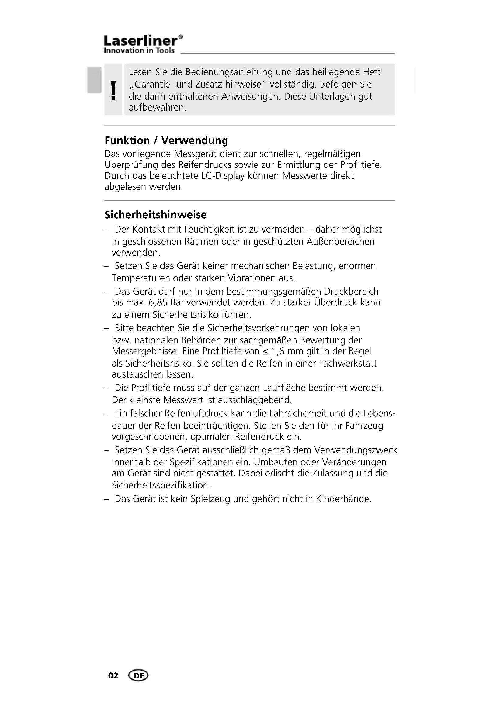 BEDIENUNGSANLEITUNG TireCheck Laserliner