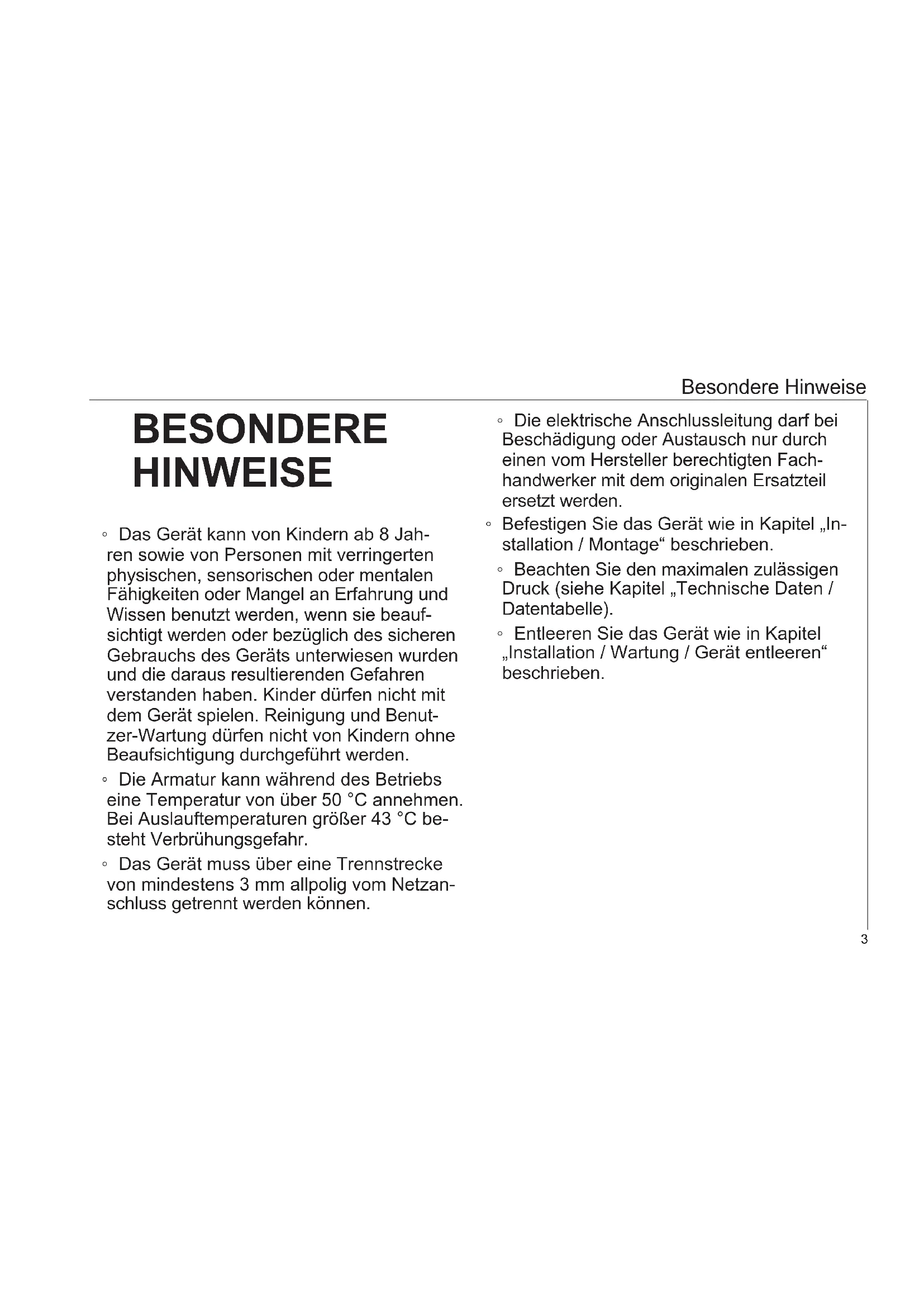 Besondere Hinweise BESONDERE HINWEISE