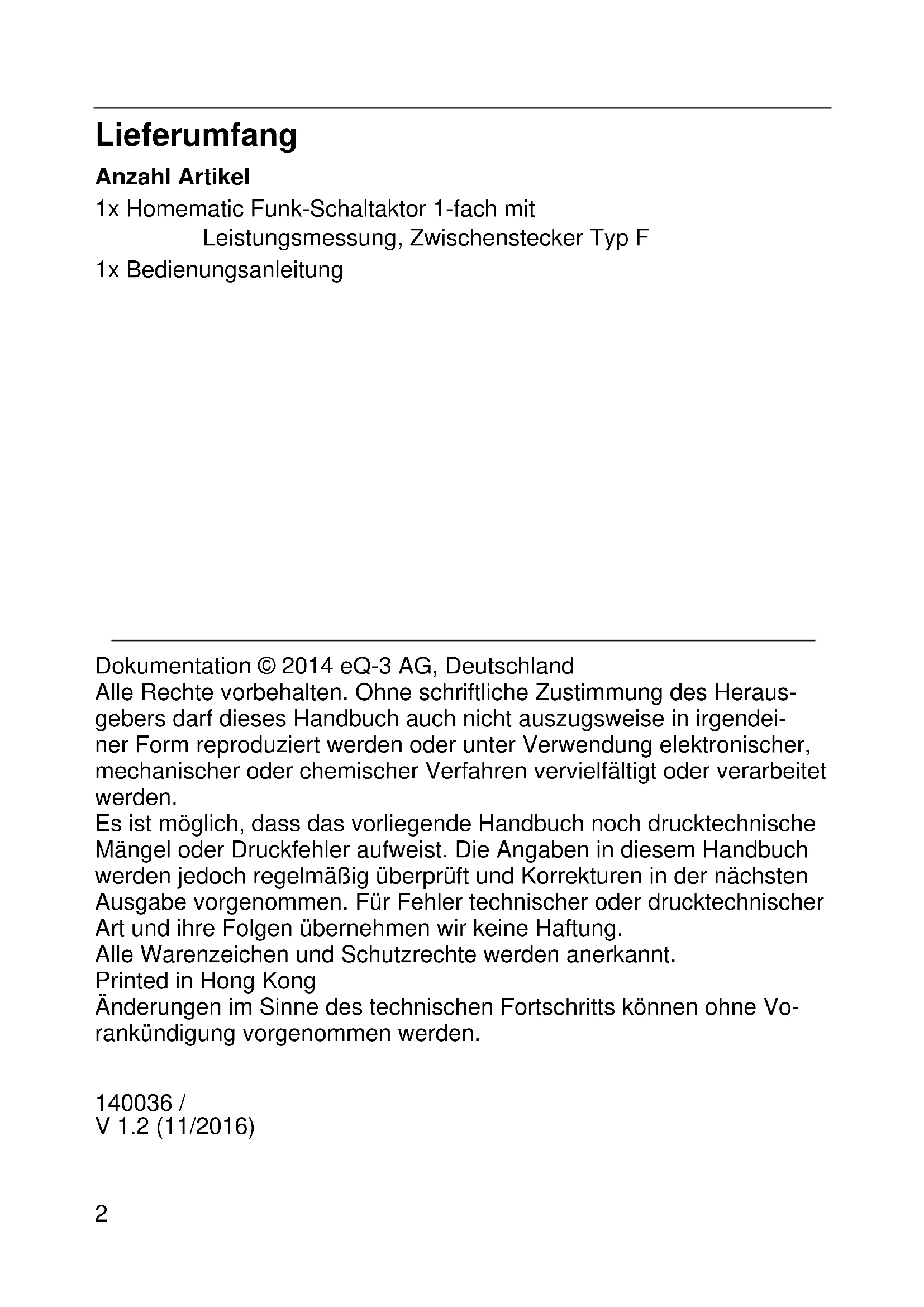 1x Homematic Funk-Schaltaktor 1-fach mit Leistungsmessung, Zwischenstecker Typ F 1x Bedienungsanleitung