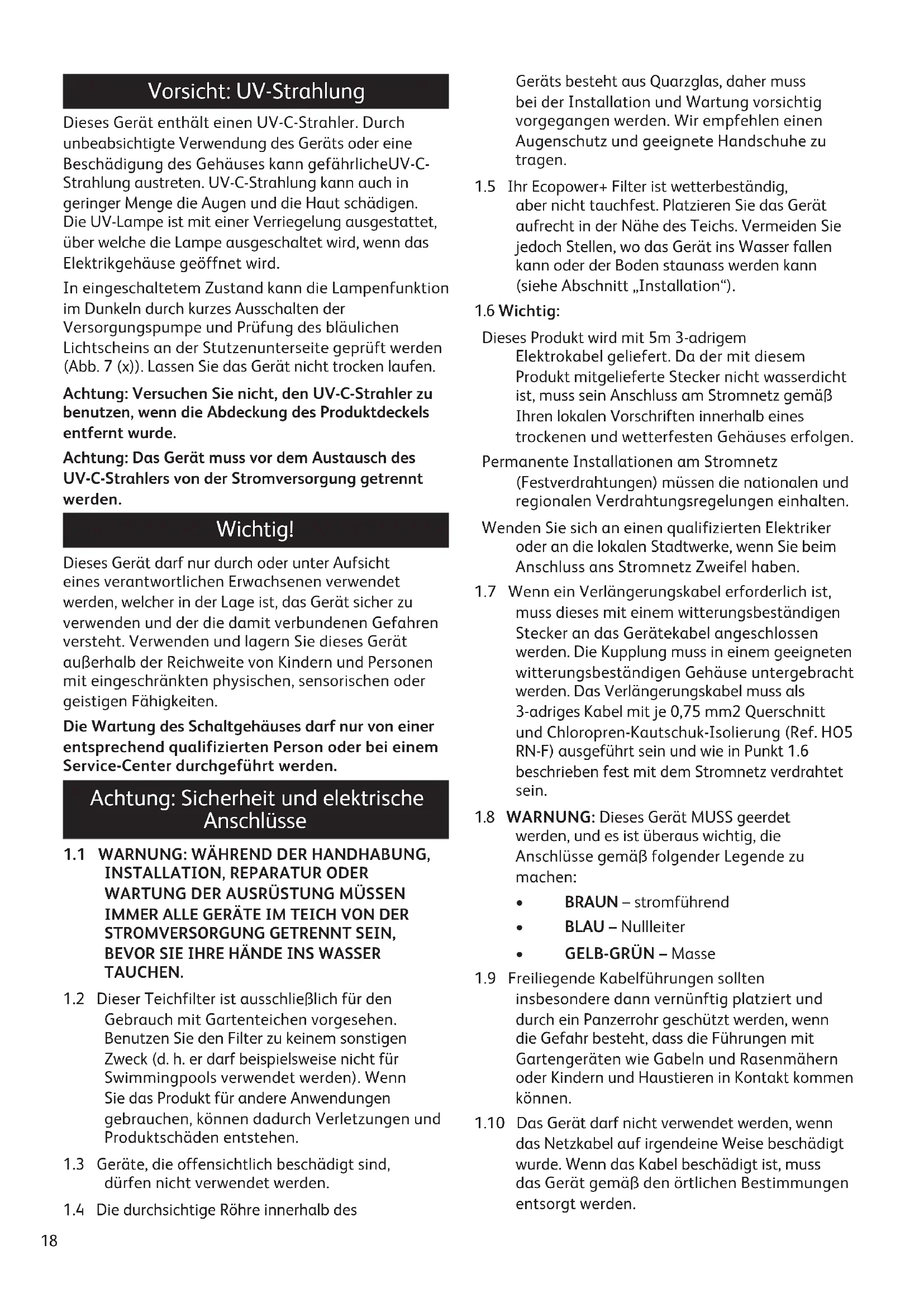 1.2 Dieser Teichfilter ist ausschließlich für den