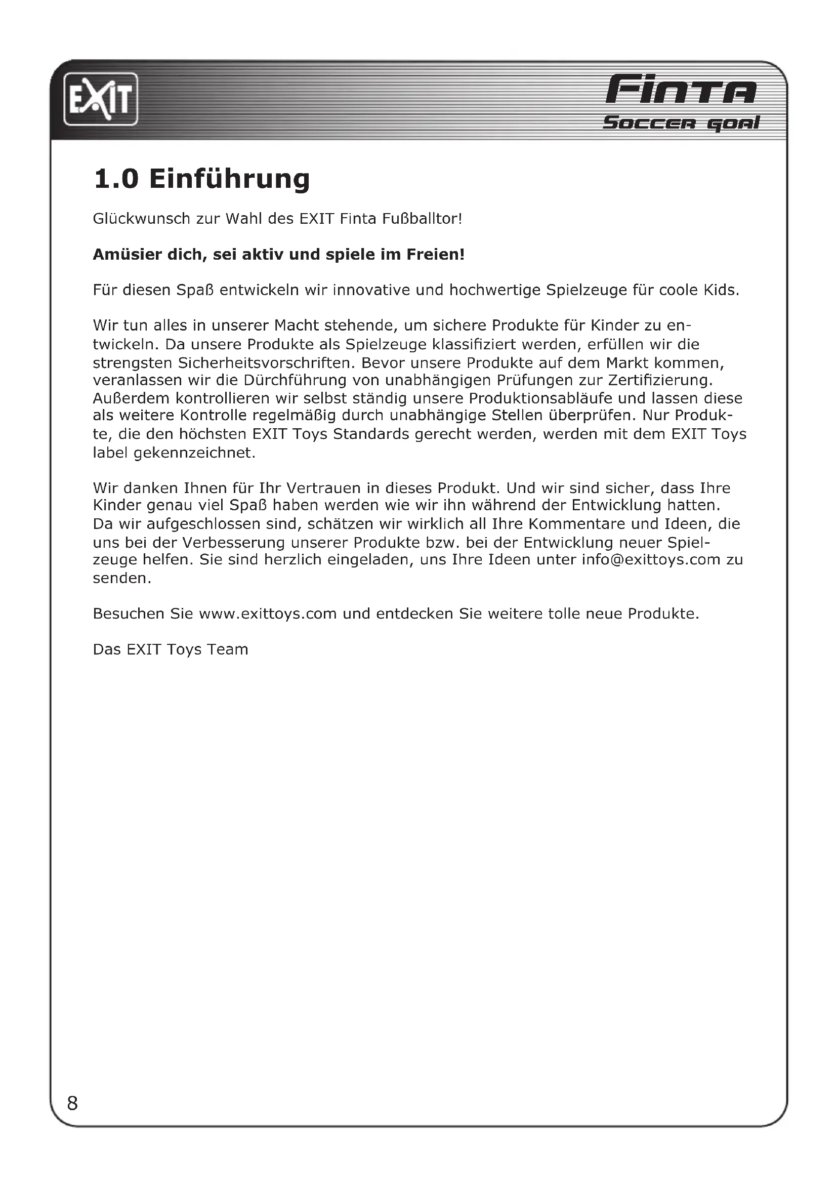 BEDIENUNGSANLEITUNG Finta Goal EXIT