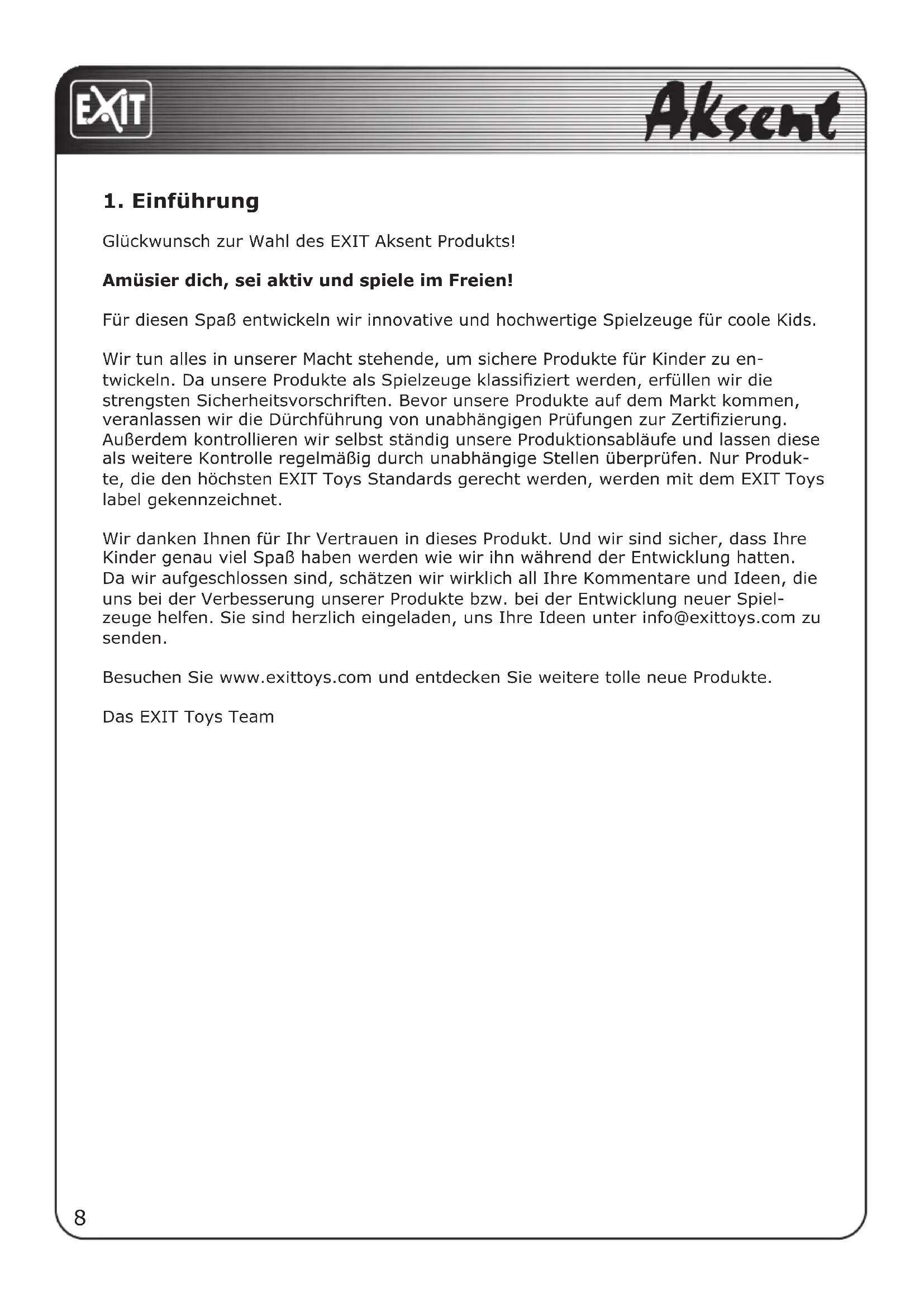 Glückwunsch zur Wahl des EXIT Aksent Produkts!