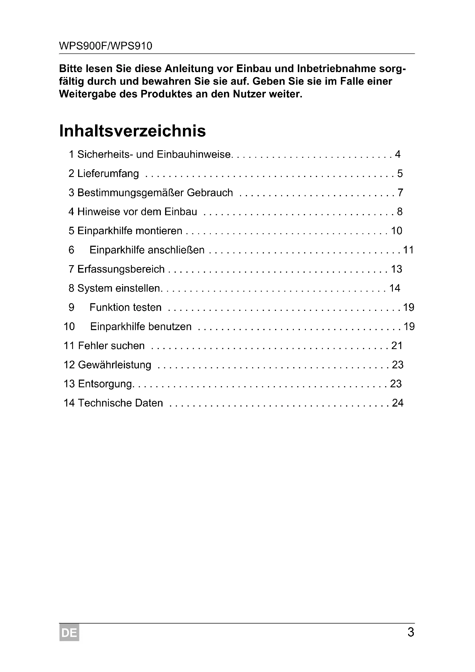 - 14 Technische Daten DE Sicherheits- und Einbauhinweise WPS900F/WPS910 p. 24