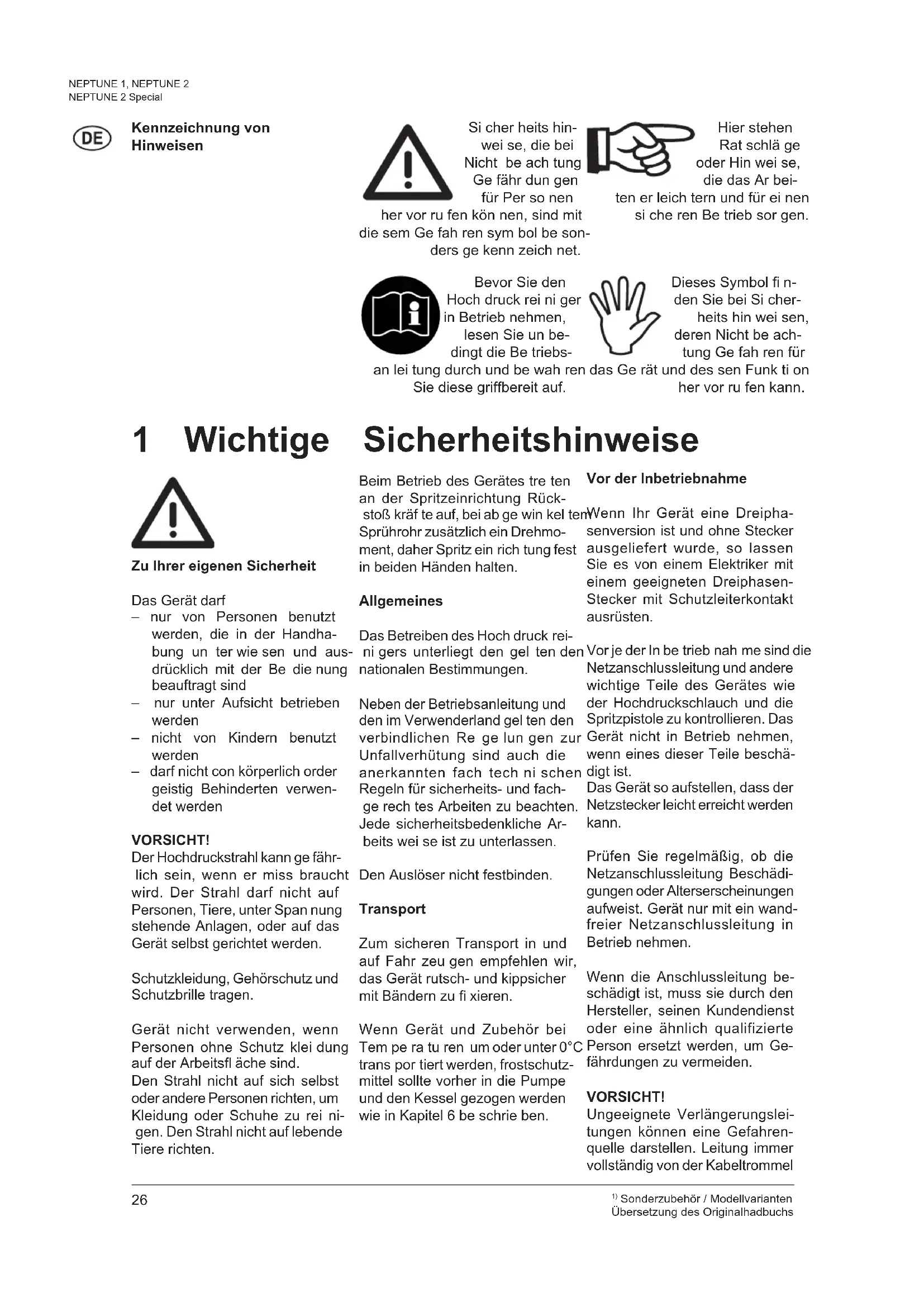 Sonderzubehör / Modellvarianten Übersetzung des Originalhadbuchs NEPTUNE 1, NEPTUNE 2 NEPTUNE 2 Special 3 Vor der Inbetriebnahme