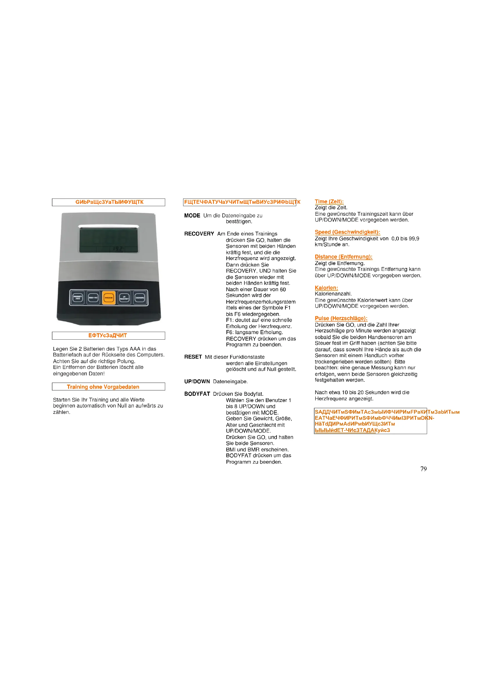 Die Herzfrequenzmessung des Computers ist eine ungeführte, nicht geechte Widergabe undarf nicht als Richtlinie in einer herzrelevanten Therapie verwendet werden.