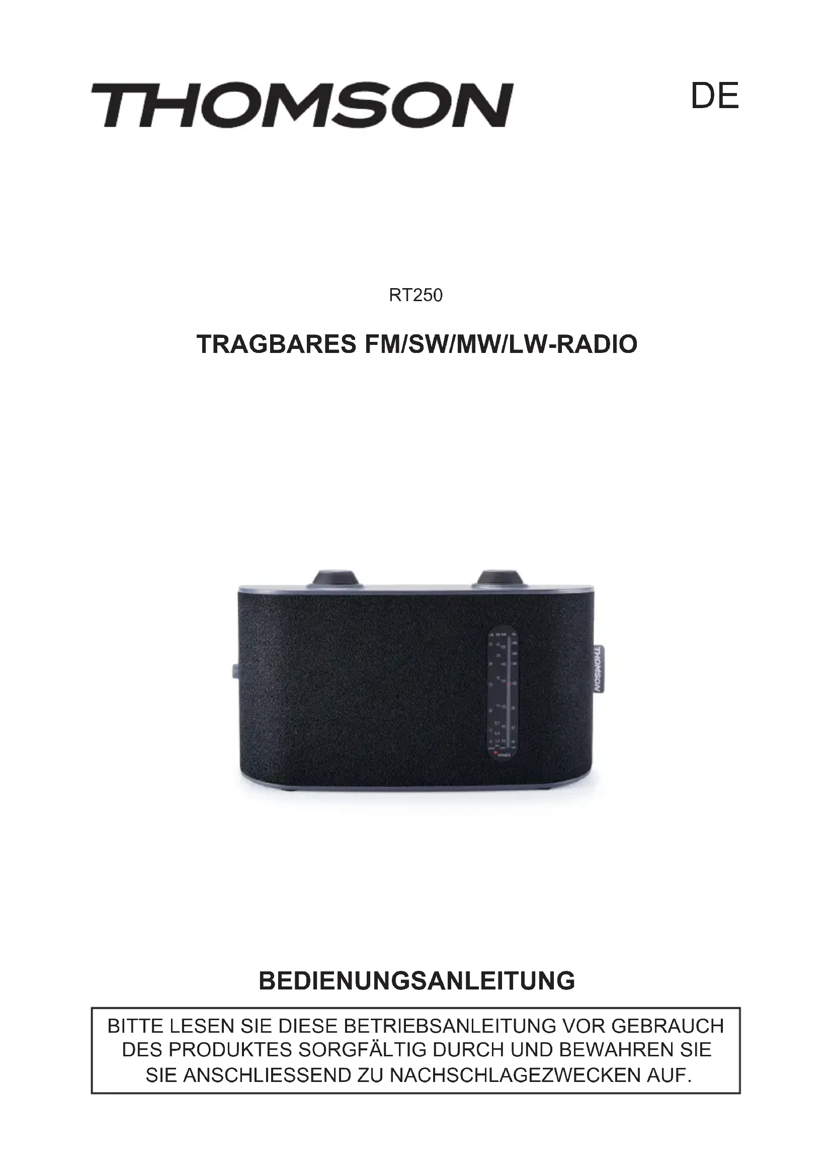 BEDIENUNGSANLEITUNG RT252 THOMSON