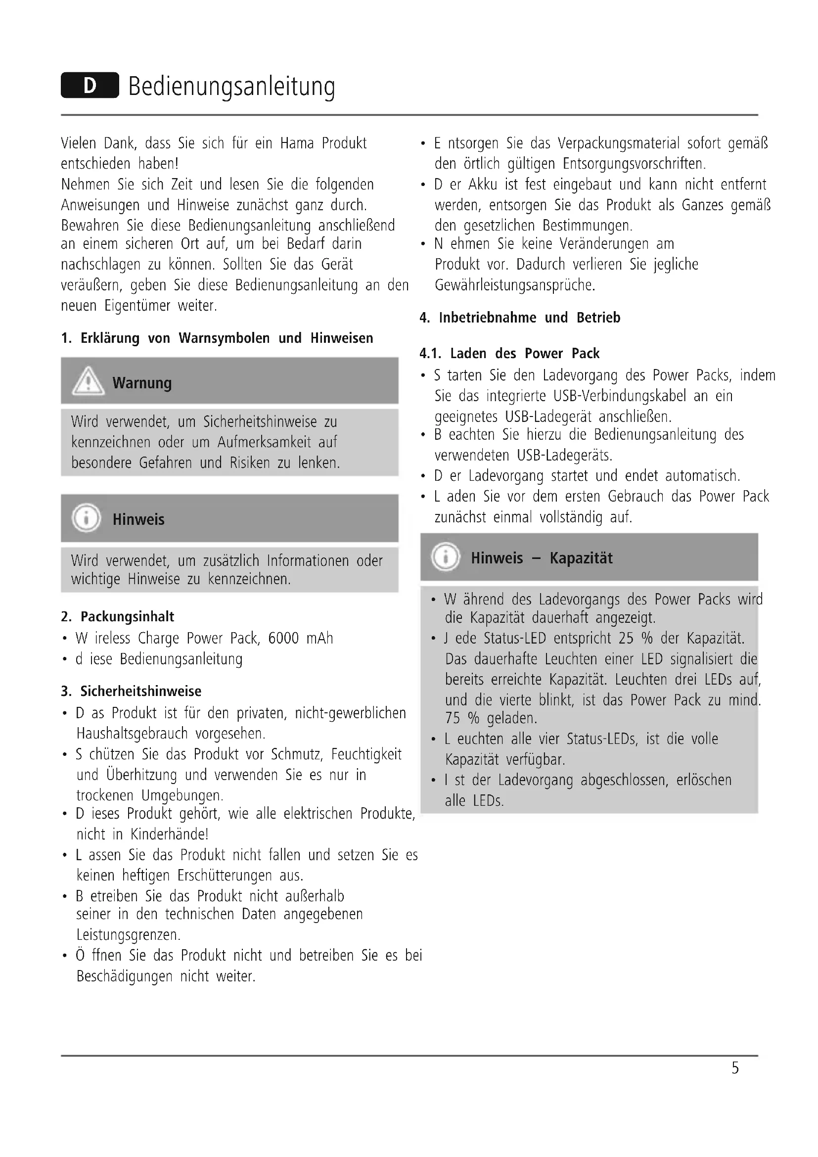 00137427 - Tragbarer Akku HAMA - Kostenlose Bedienungsanleitung