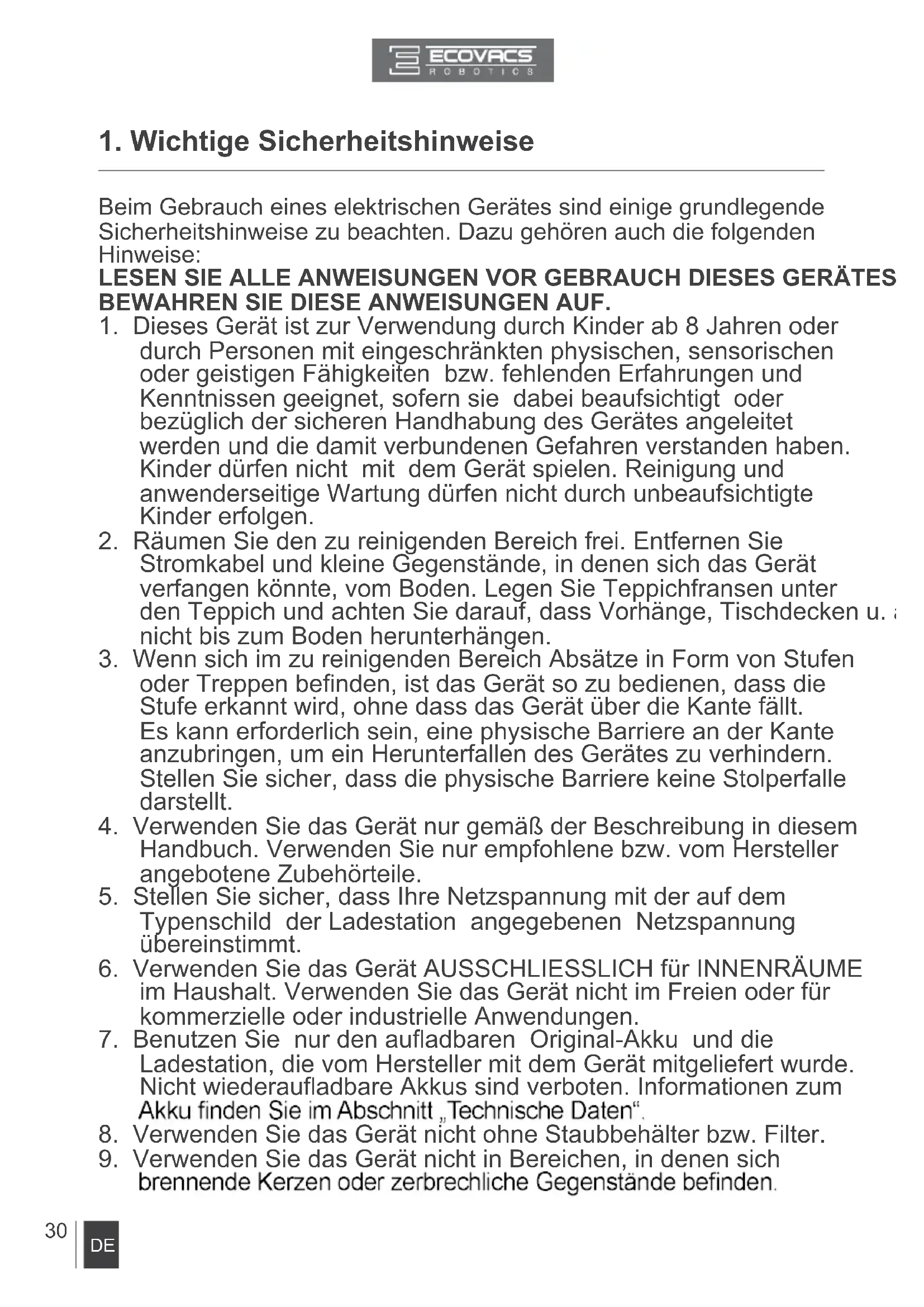 1. Wichtige SicherheitshinweiseDE