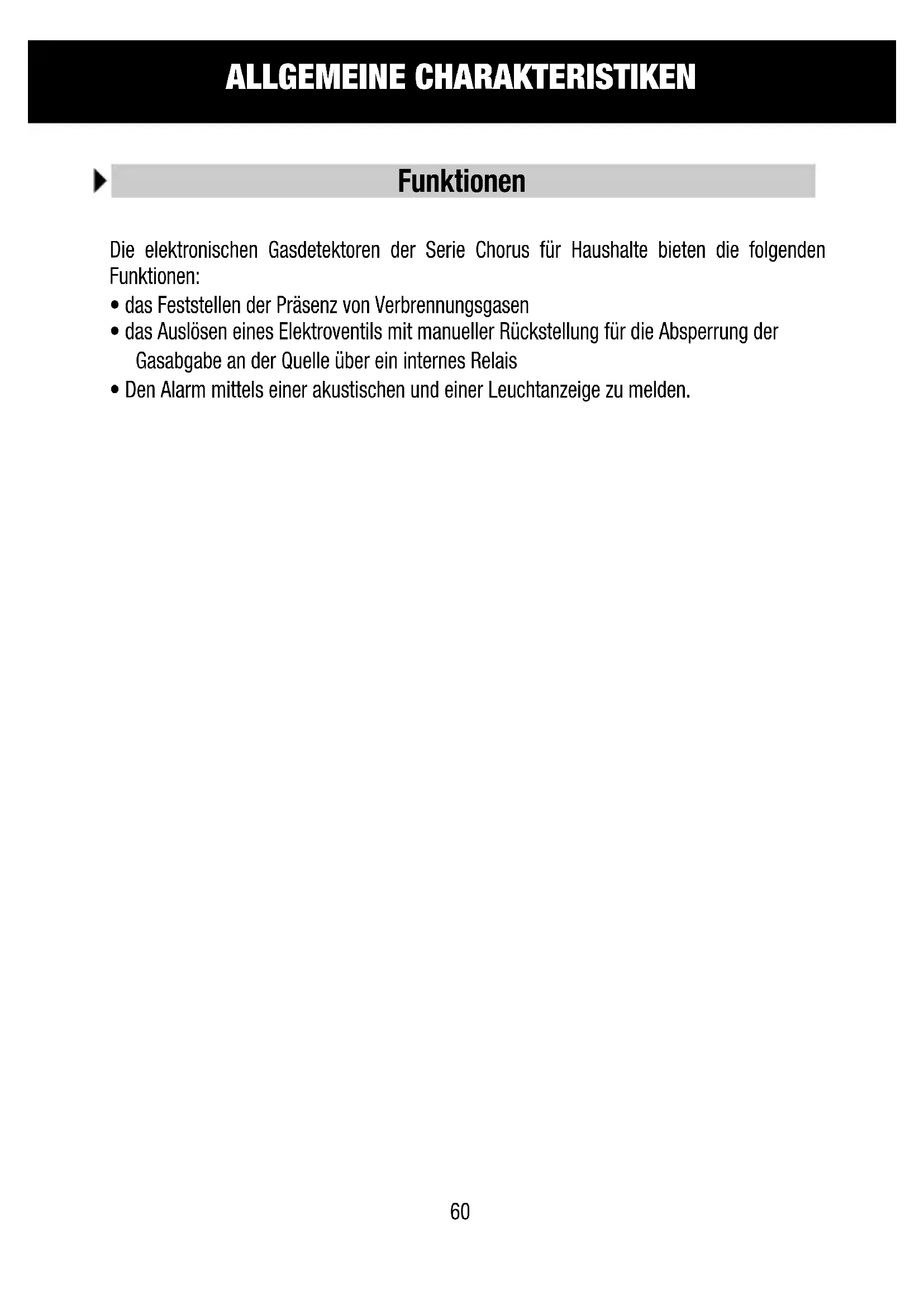 Die elektronischen Gasdetektoren der Serie Chorus für Haushalte bieten die folgenden Funktionen: