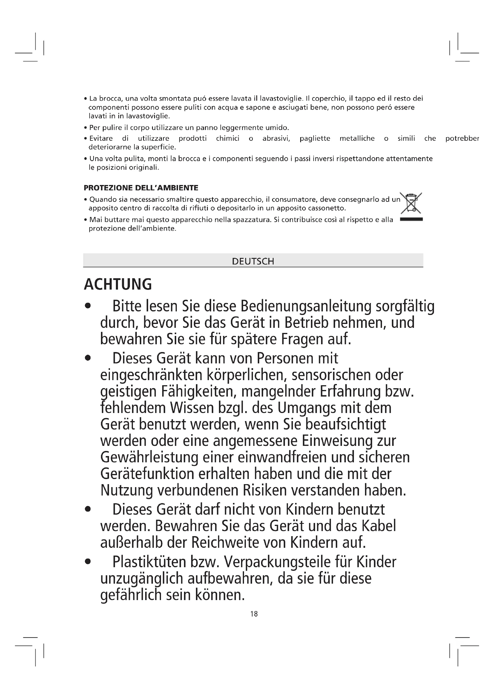 - Die vom Benutzer vorzunehmende Reinigung und Pege sollte nicht unbeaufsichtigt von Kindern durchgeführt werden.