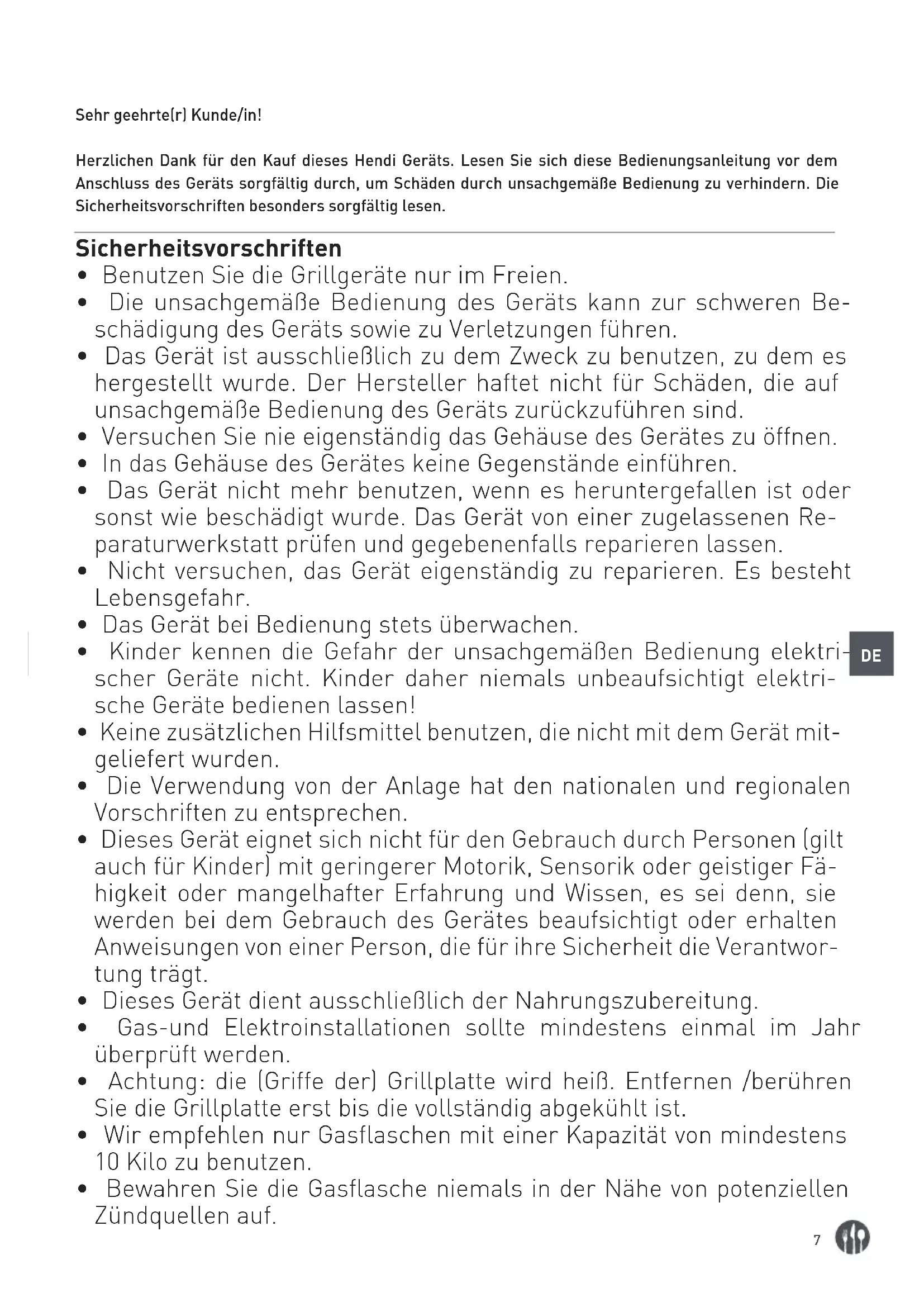- Dieses Gerät dient ausschließlich der Nahrungszubereitung.