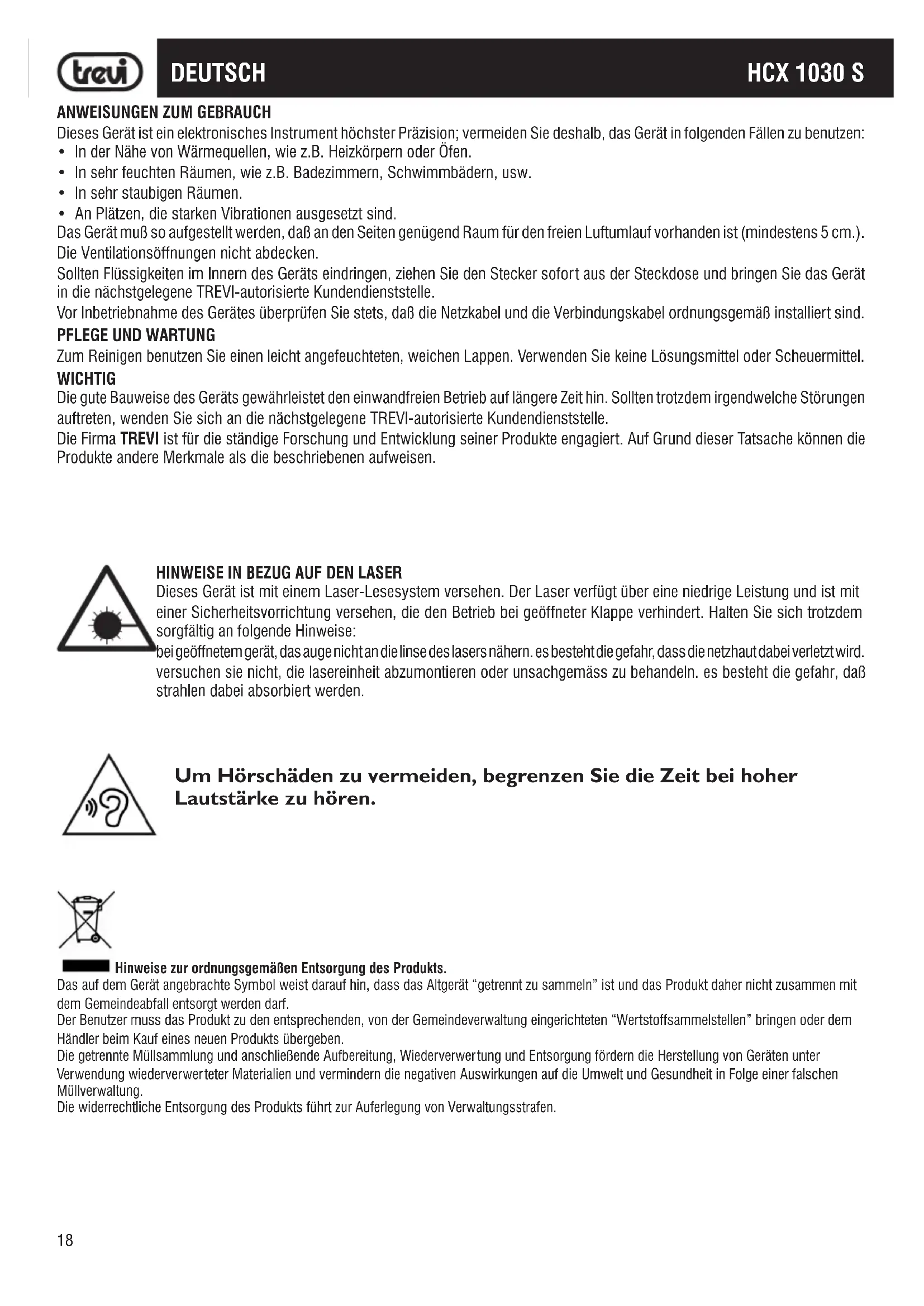 Finden Sie kostenlos die Bedienungsanleitung des Geräts HCX 1030 S Trevi als PDF.