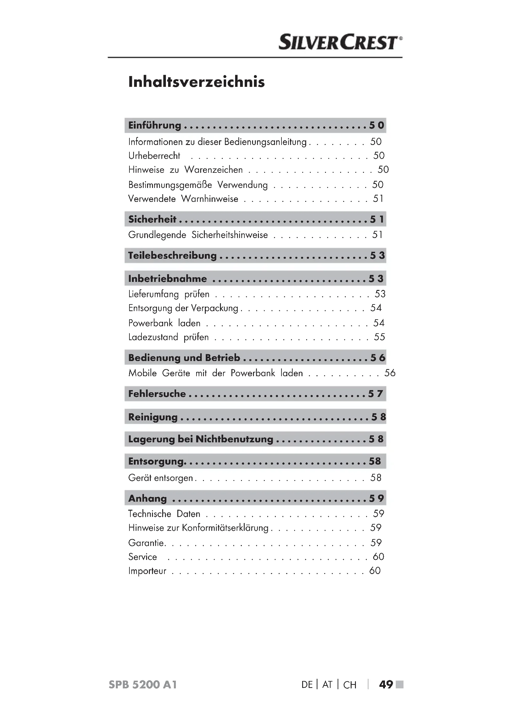 - 49 ■ SPB 5200 A1 Inhaltsverzeichnis Einführung p. 50