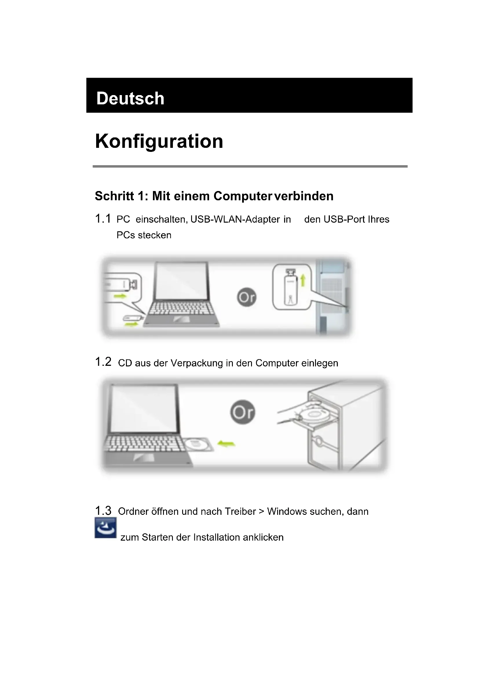 1.1 PC einschalten, USB-WLAN-Adapter in den USB-Port Ihres PCs stecken