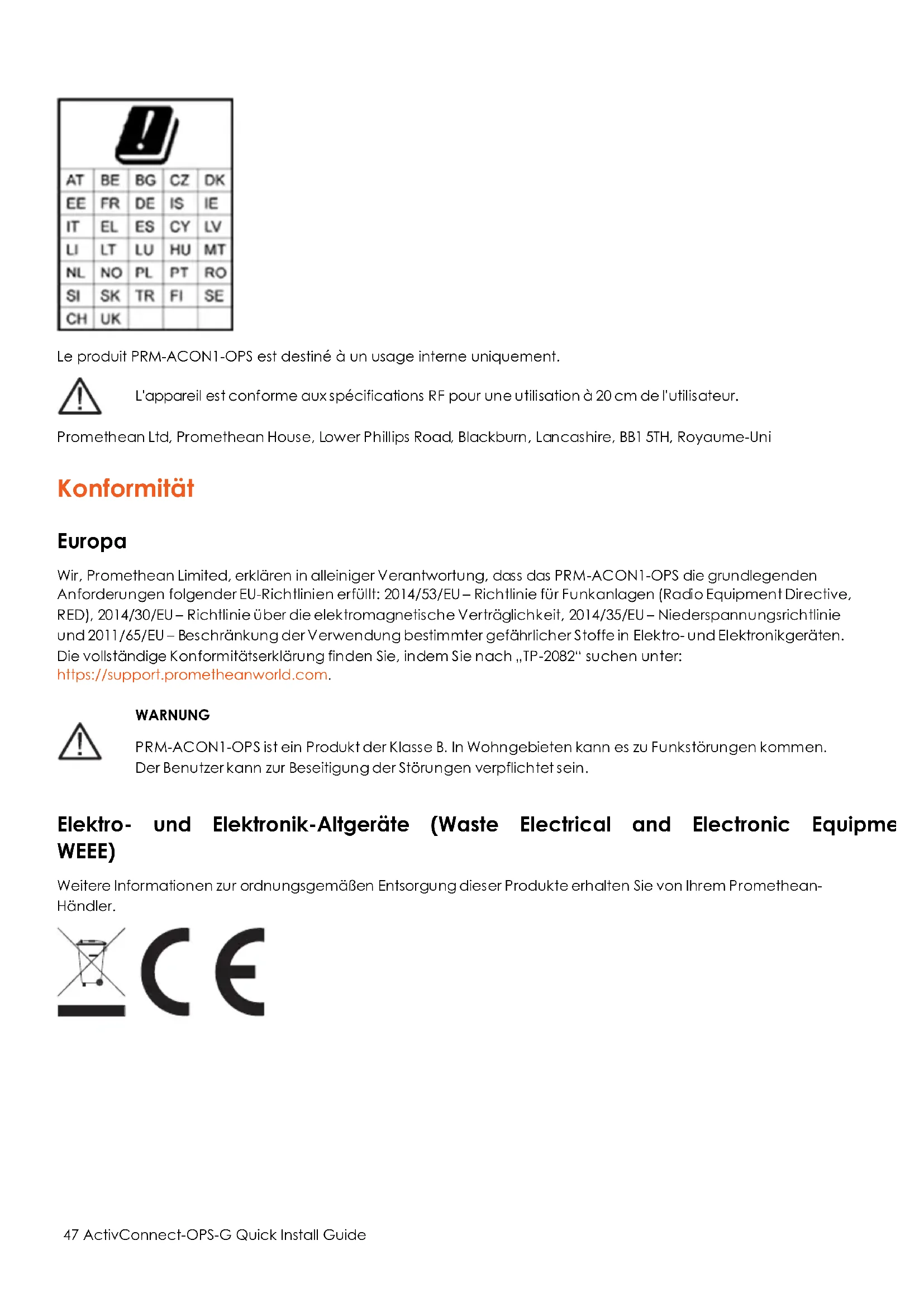 Finden Sie kostenlos die Bedienungsanleitung des Geräts ActivConnect OPSG Promethean als PDF.