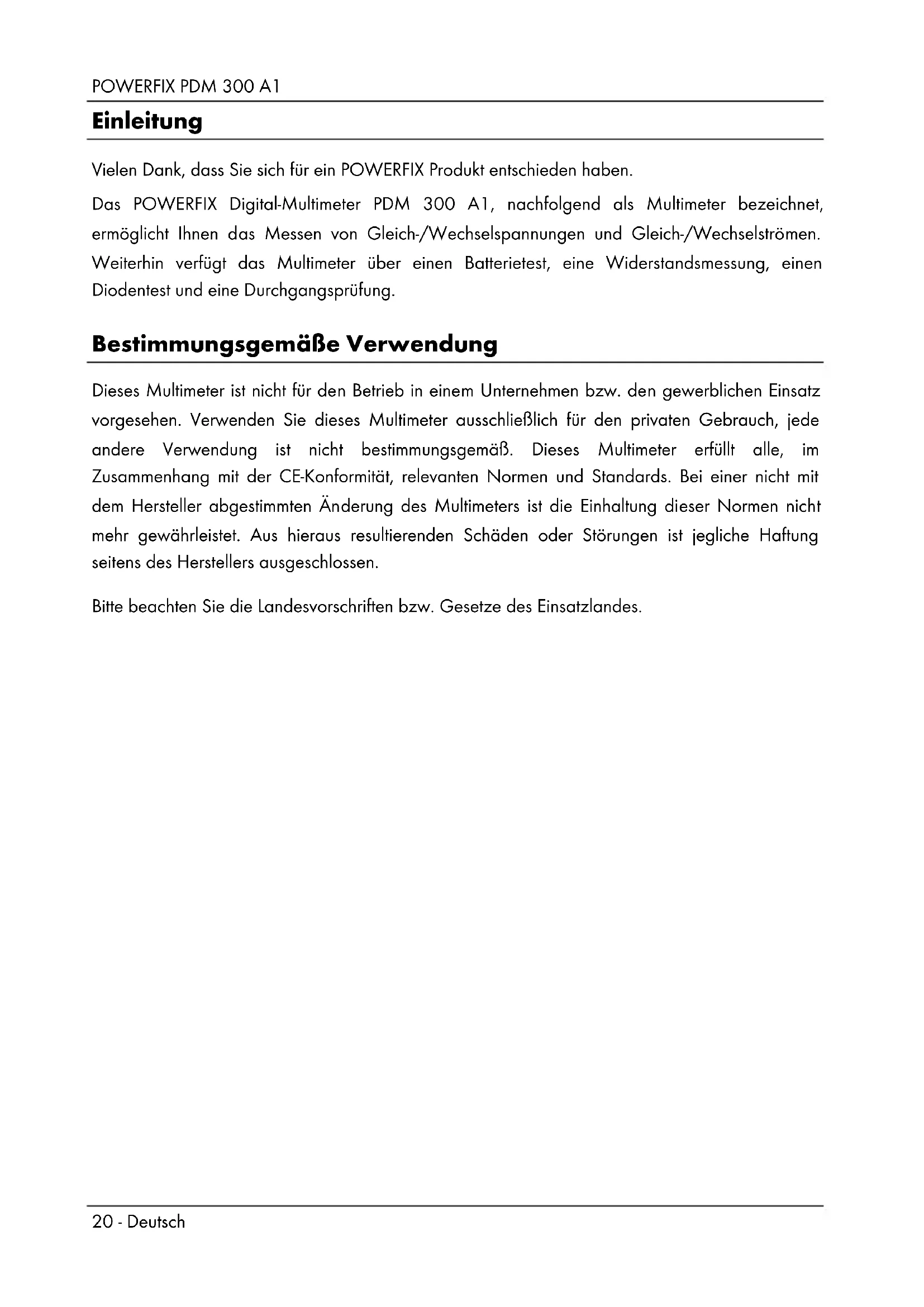 PDM 300 A1 - Multimeter POWERFIX - Kostenlose Bedienungsanleitung