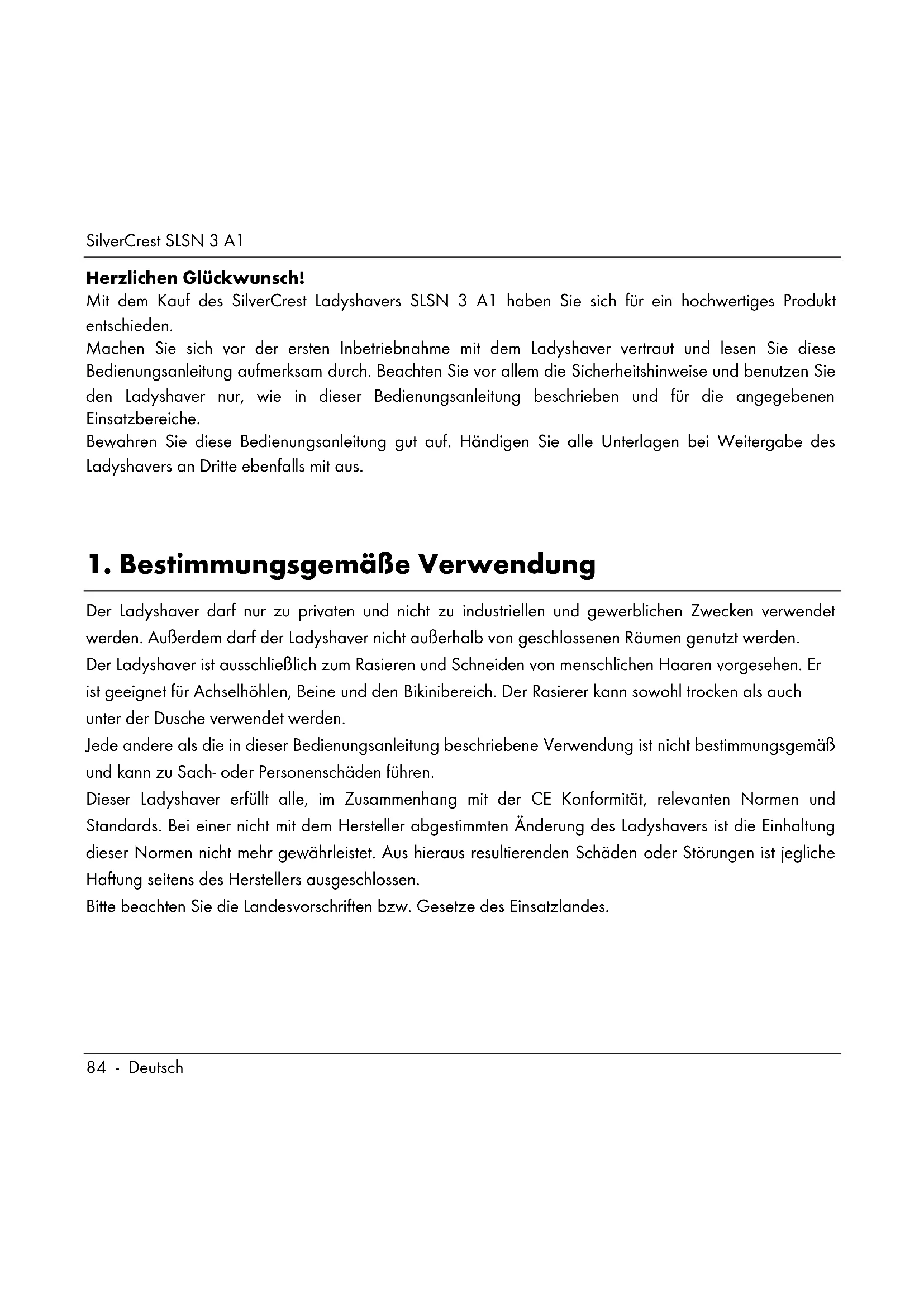 Mit dem Kauf des SilverCrest Ladyshavers SLSN 3 A1 haben Sie sich für ein hochwertiges Produkt entschieden.