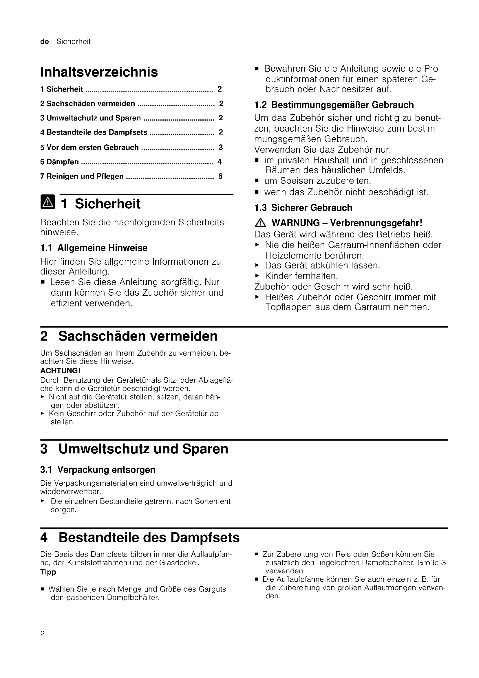 Beim Offnen der Geräteur kann heiBer Dampf entweichen. Dampf ist je nach Temperatur nicht sightbar.