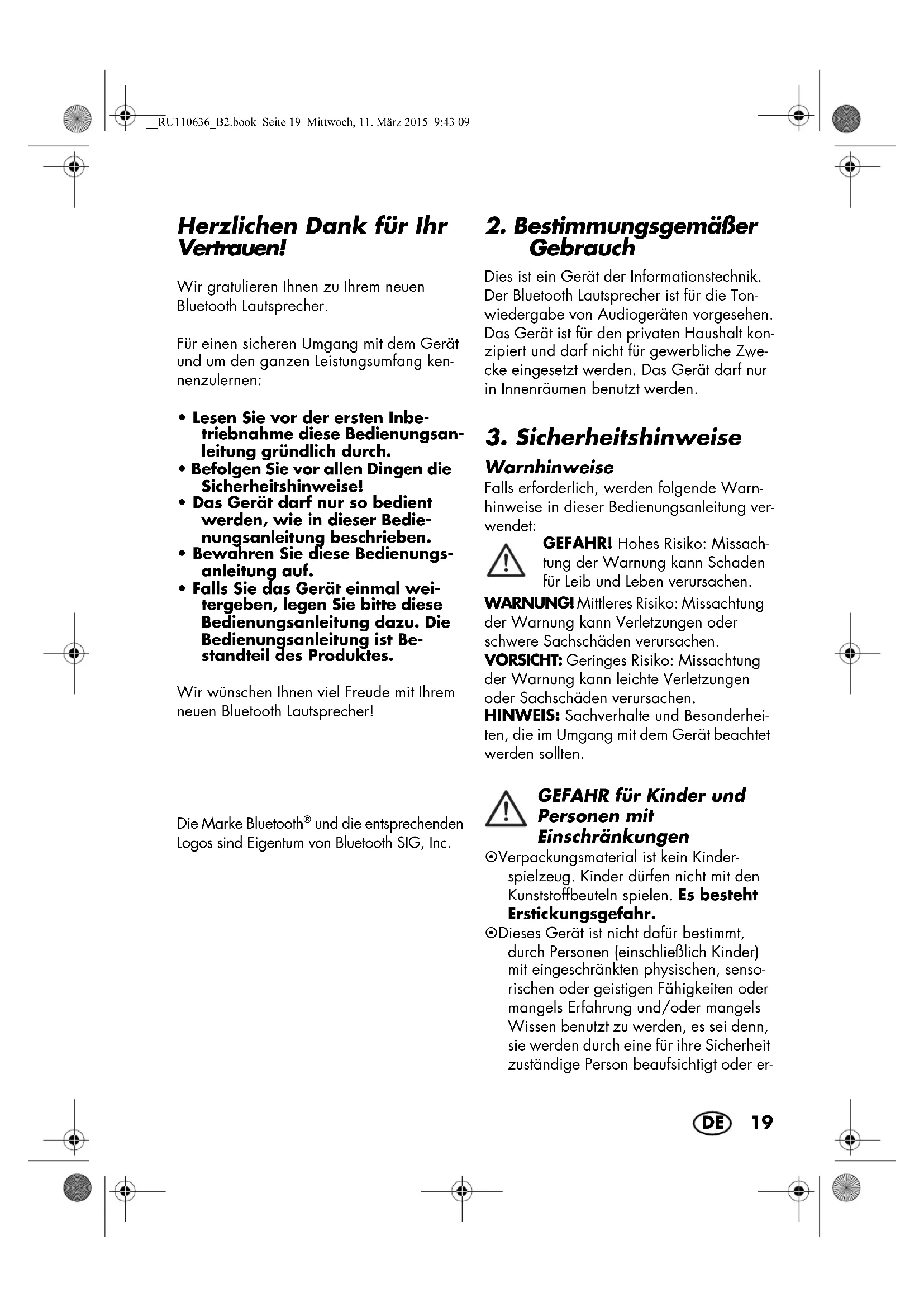- Falls Sie das Gerät einmal wei- tergeben, legen Sie bitte diese Bedienungsanleitung dazu. Die Bedienungsanleitung ist Be- standteil des Produktes. Wir wünschen Ihnen viel Freude mit Ihrem neuen Bluetooth Lautsprecher! Die Marke Bluetooth