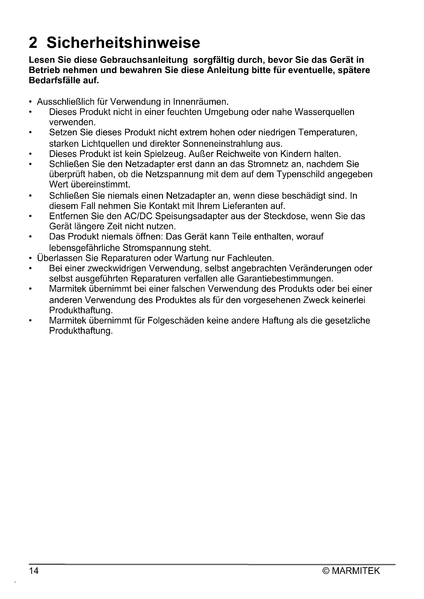 - Marmitek übernimmt bei einer falschen Verwendung des Produkts oder bei einer anderen Verwendung des Produktes als für den vorgesehenen Zweck keinerlei Produkthaftung.