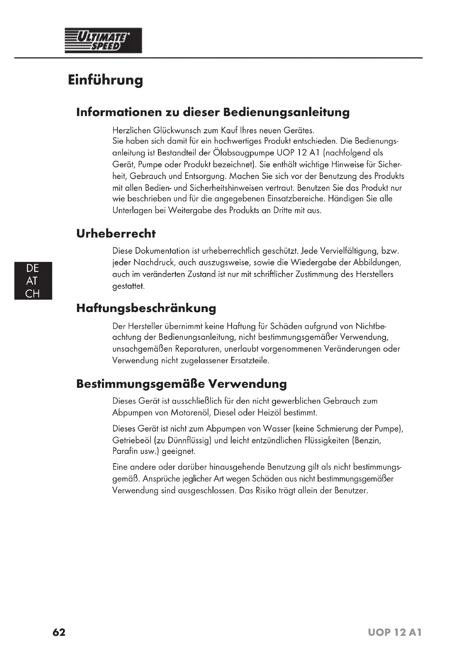 BEDIENUNGSANLEITUNG UOP 12 A1 ULTIMATE SPEED