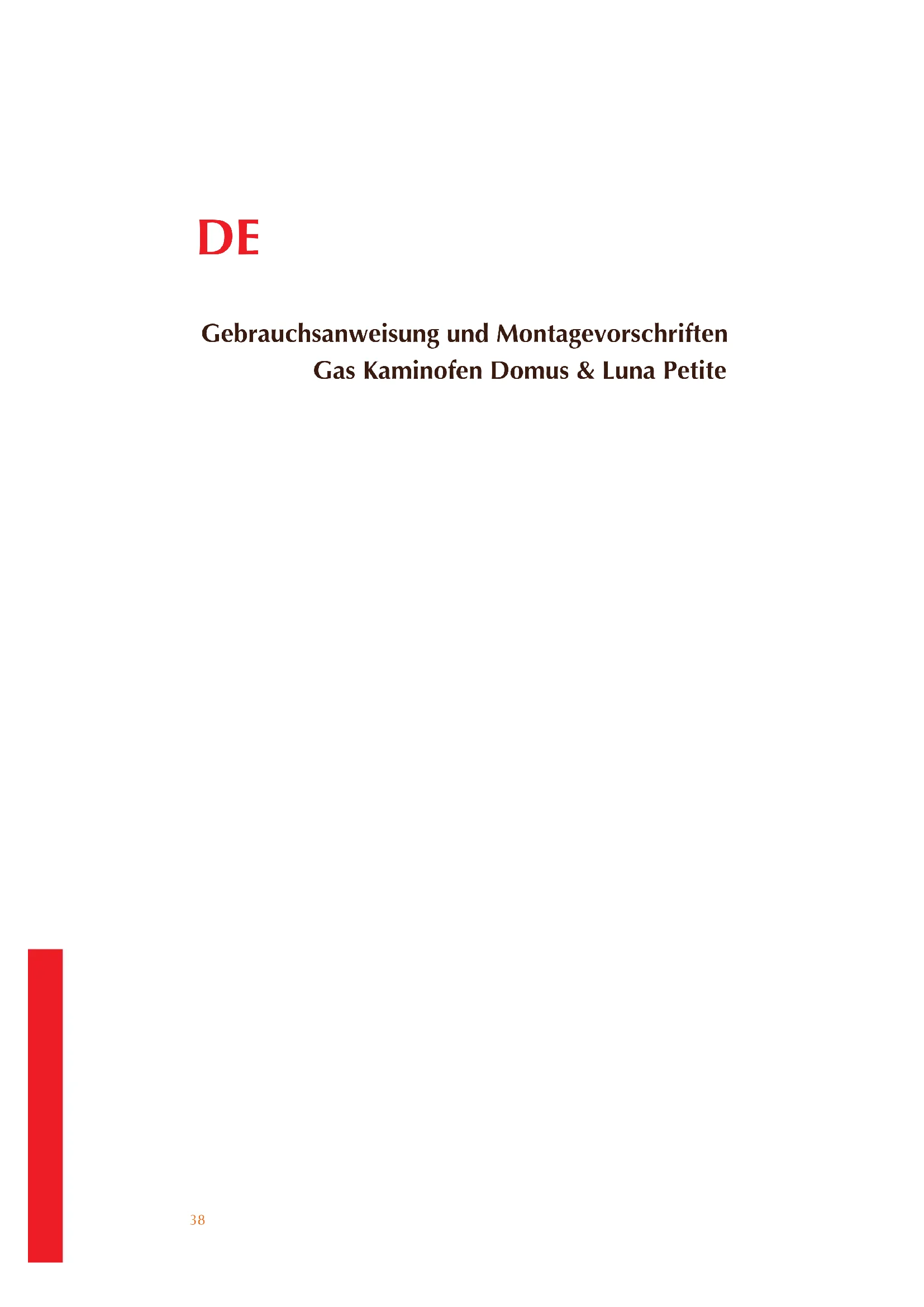 - Der Domus oder Luna Petite kann nur auf Erdgas angeschlossen werden.