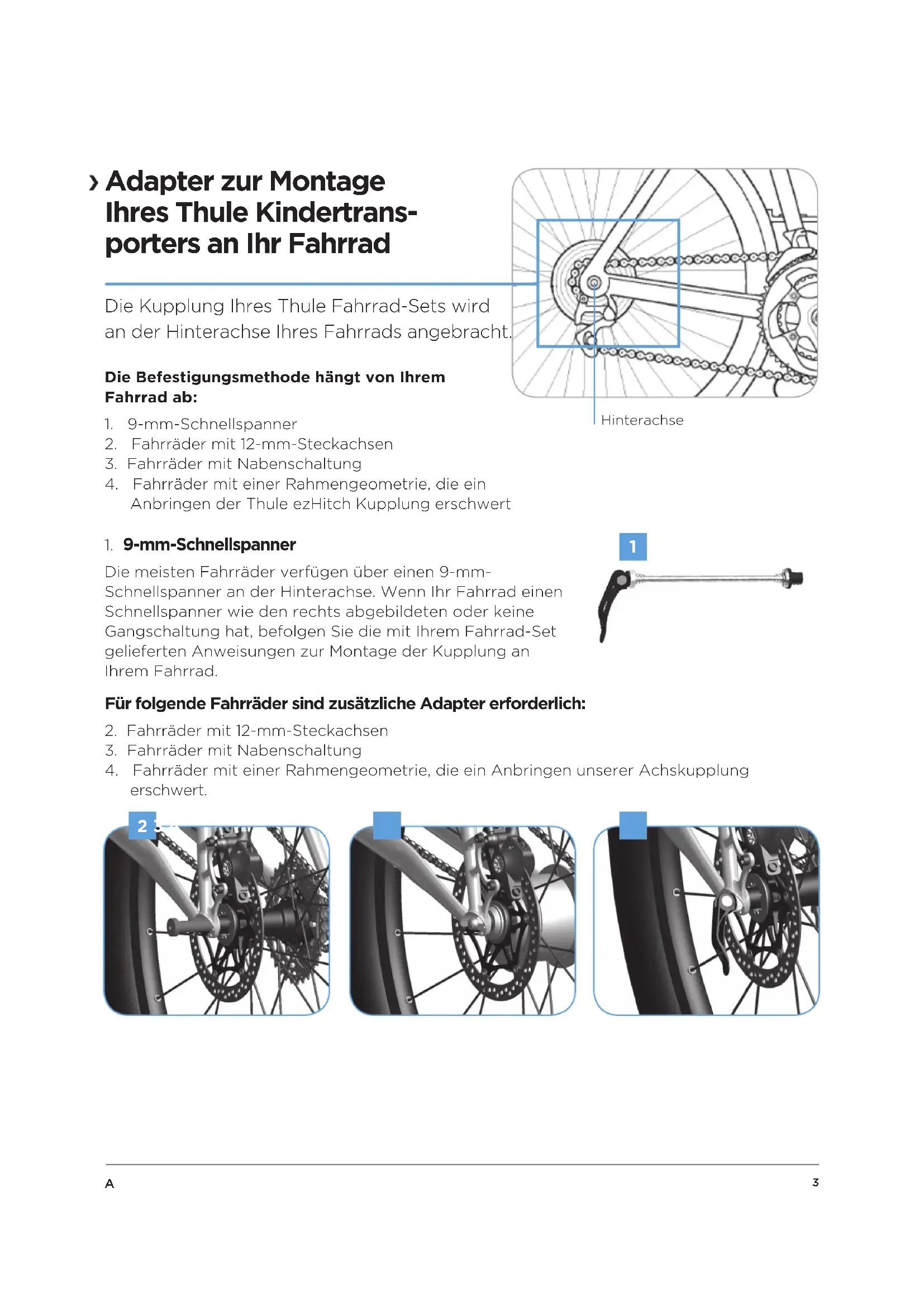 Die Kupplung Ihres Thule Fahrrad-Sets wird an der Hinterachse Ihres Fahrrads angebracht.