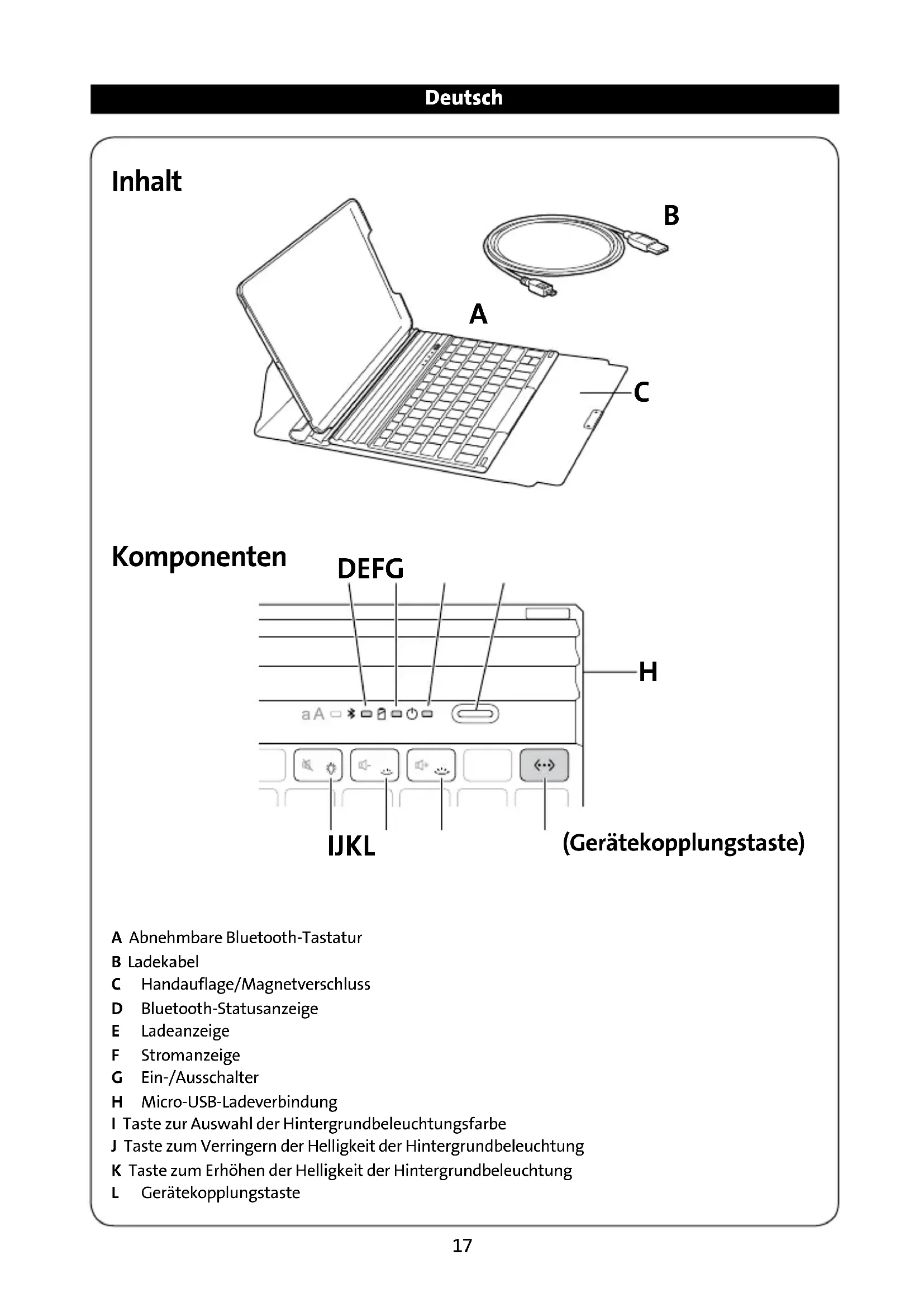 A Abnehmbare Bluetooth-Tastatur