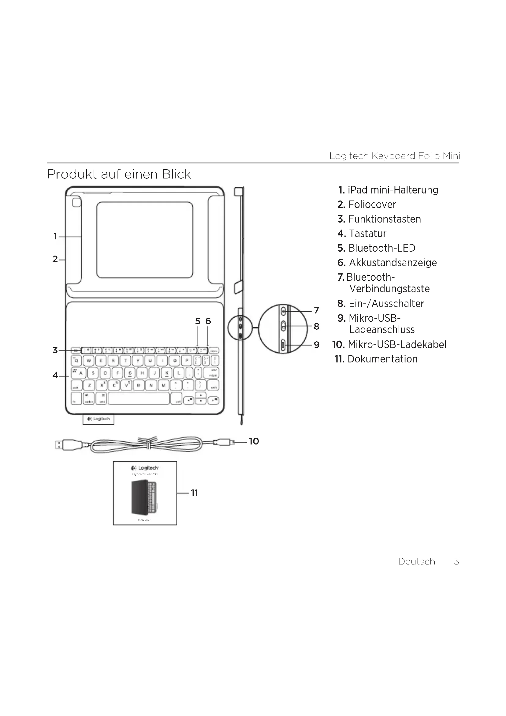 11Logitech Keyboard Folio Mini 4 Deutsch Einrichten des Keyboard Folio mini Erste Schritte
