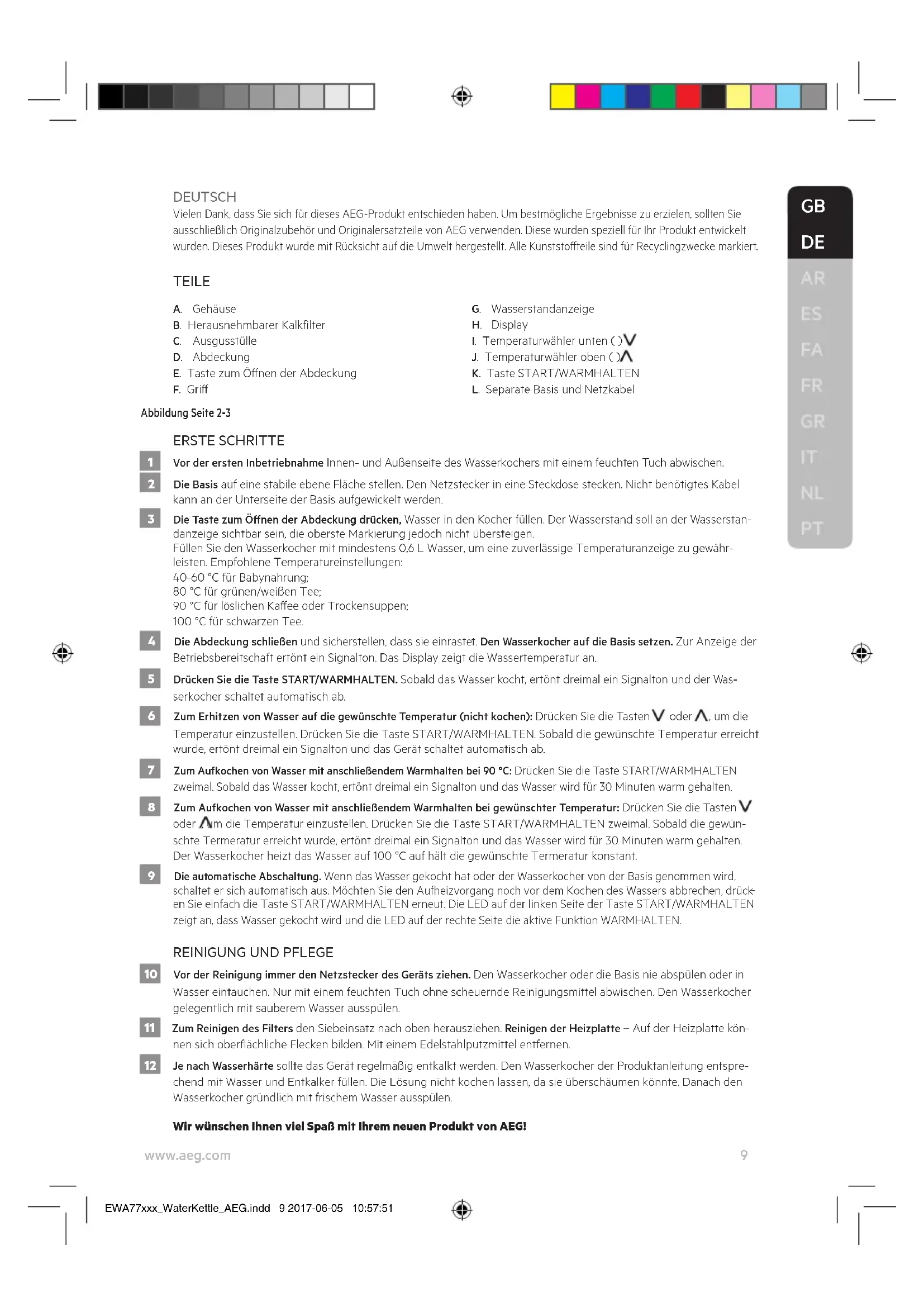 - Achtung: Wird zuviel Wasser in den Wasserkocher gefüllt, kann das kochende Wasser EWA77xxx_WaterKettle_AEG.indd 10 2017-06-05 10:57:5111 www.aeg.com