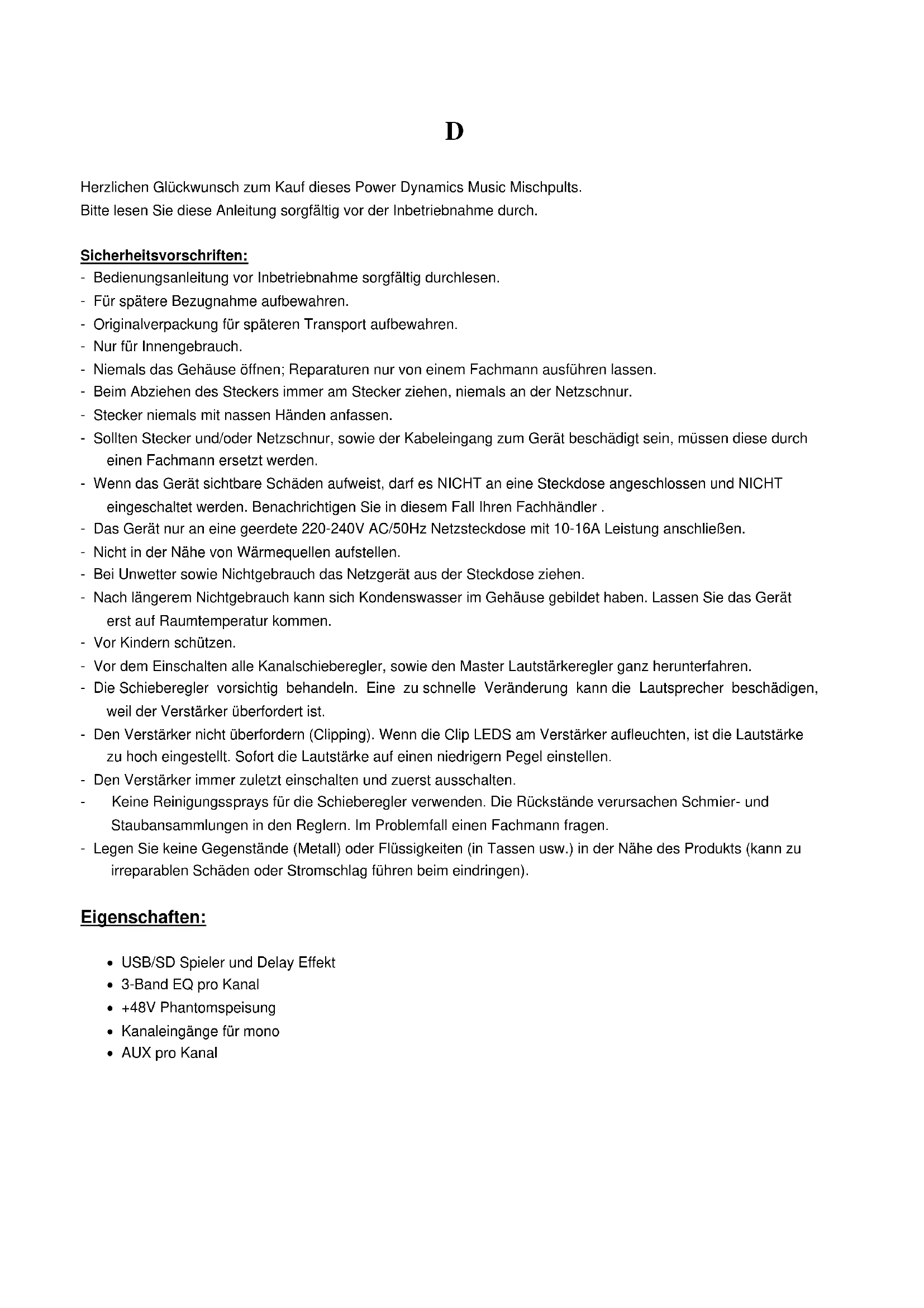 Herzlichen Glückwunsch zum Kauf dieses Power Dynamics Music Mischpults.