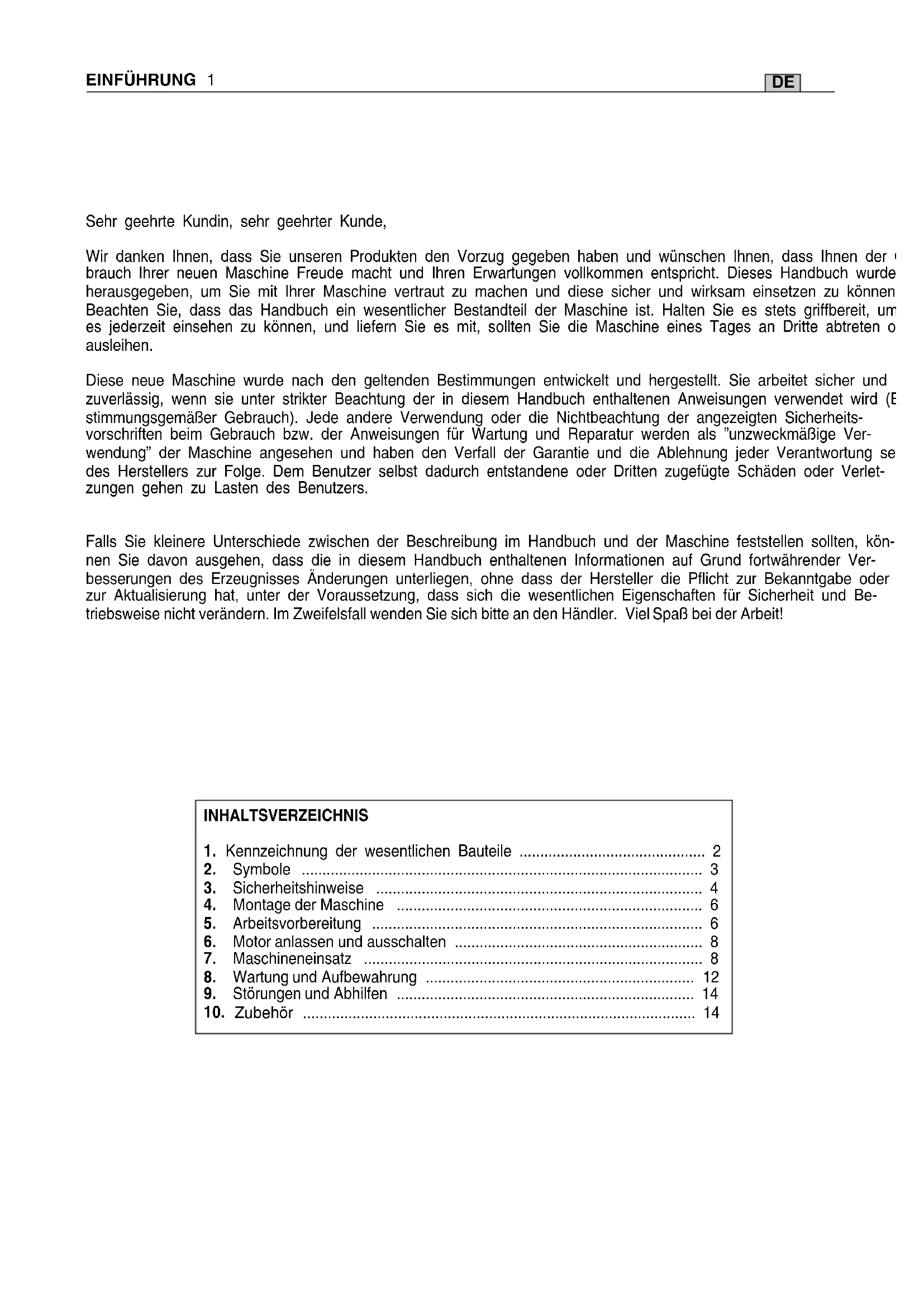 er Absicht, die Maschine nicht zu beschädigen oder Schäden zu ver- meiden. Im Falle der Nichtbeachtung besteht